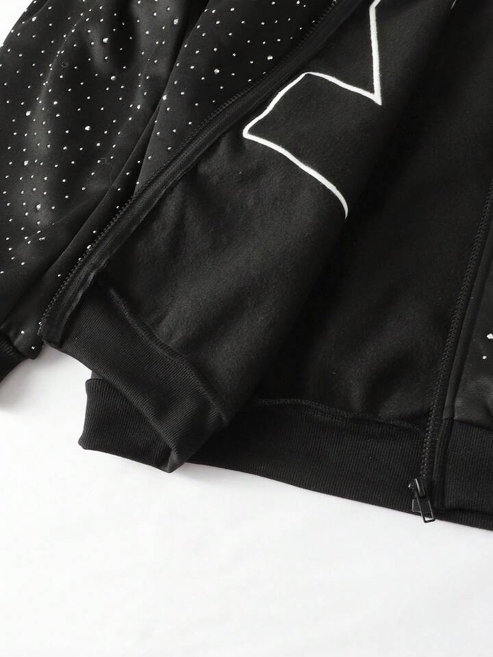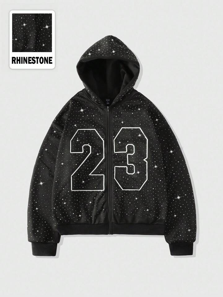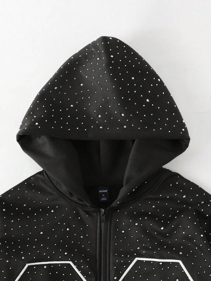 Street Life Sudadera con diamantes brillantes para hombre, estilo holgado y corto