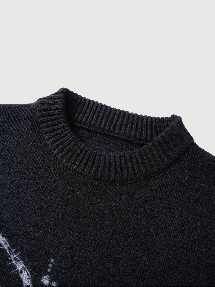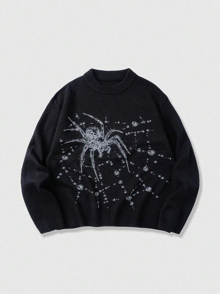 Street Life Suéter de manga larga de corte holgado con estampado de araña para hombre