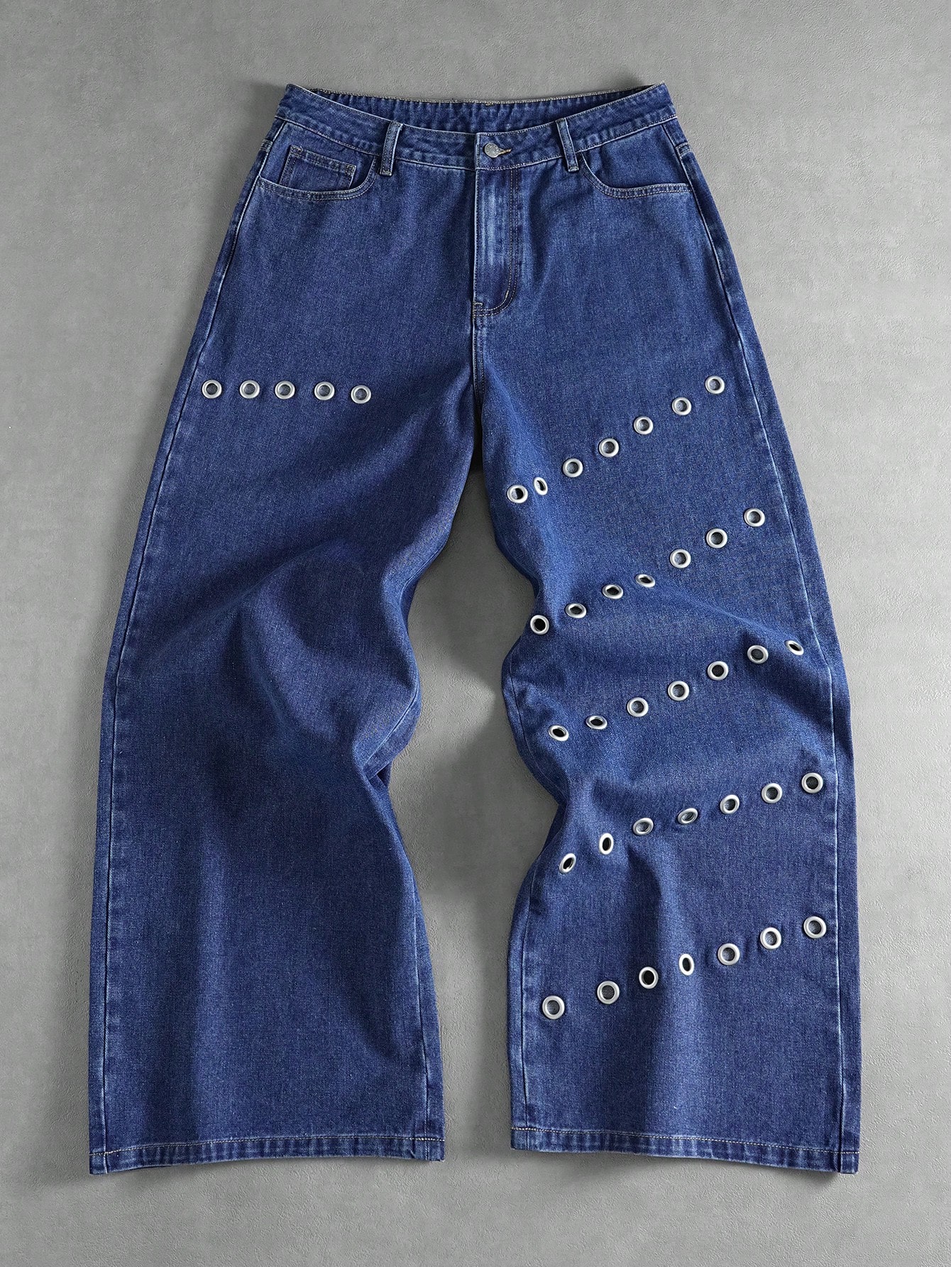 Street Life Jeans casuales y versátiles de pierna recta con ojetes y bolsillos para hombres
