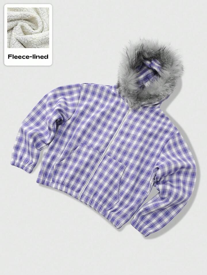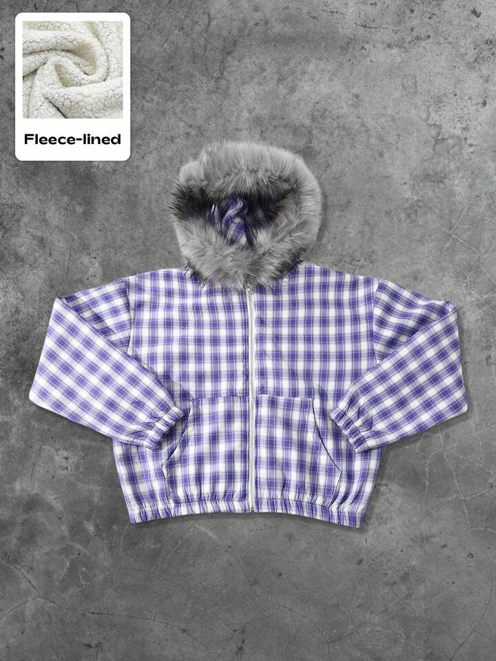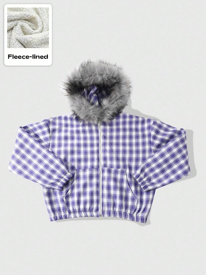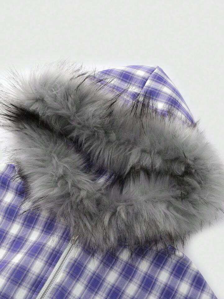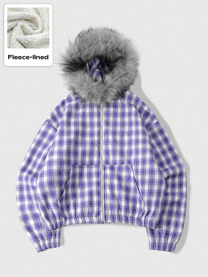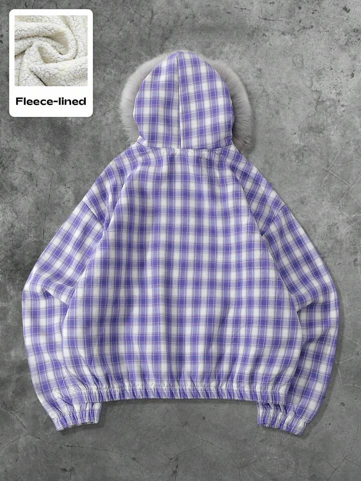 Street Life Chaqueta con cuello de felpa a cuadros estilo americano para hombre, otoño e invierno