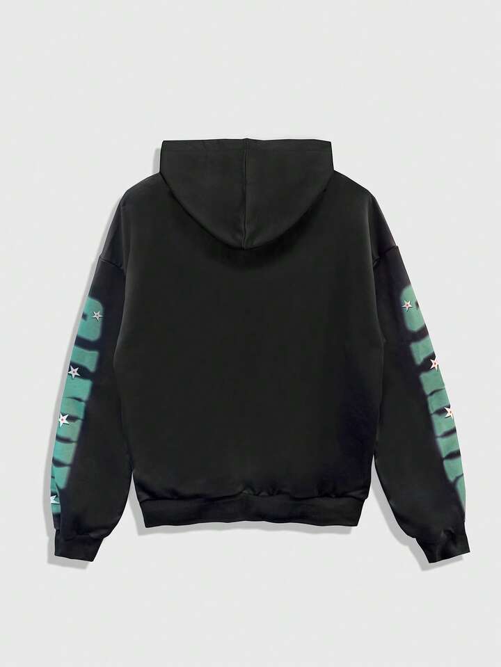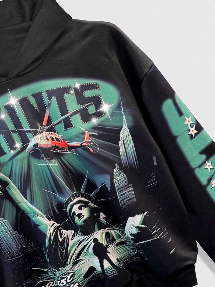 Street Life Sudadera con capucha de moda callejera para hombres con estampado gráfico y adornos de rhinestone