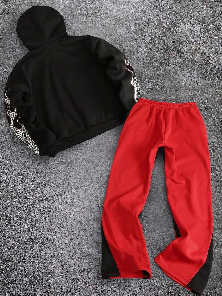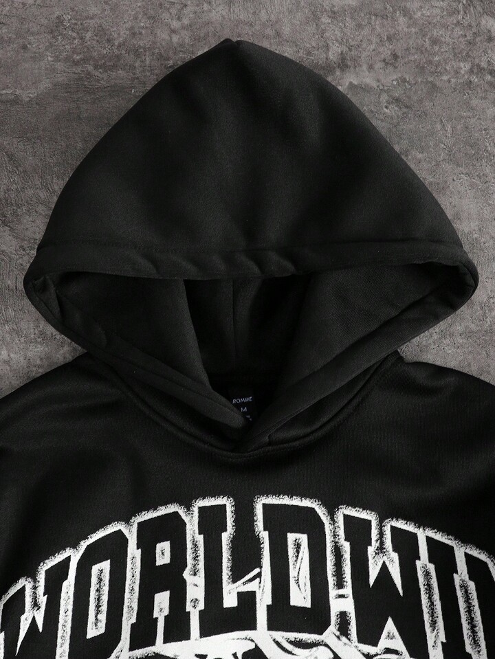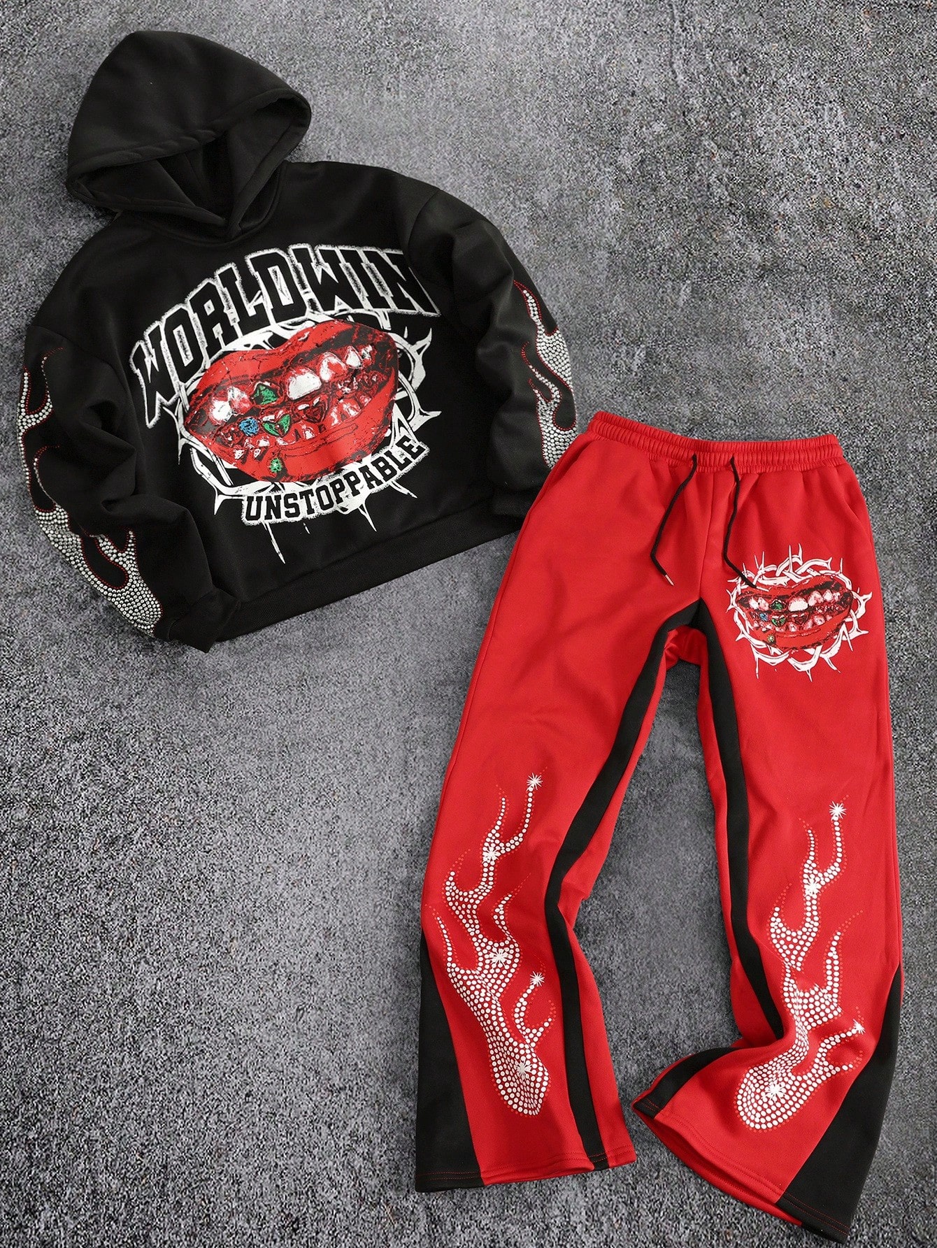 Street Life Conjunto de sudadera con capucha y pantalón de chándal con estampado de moda urbana para hombre, ropa de otoño