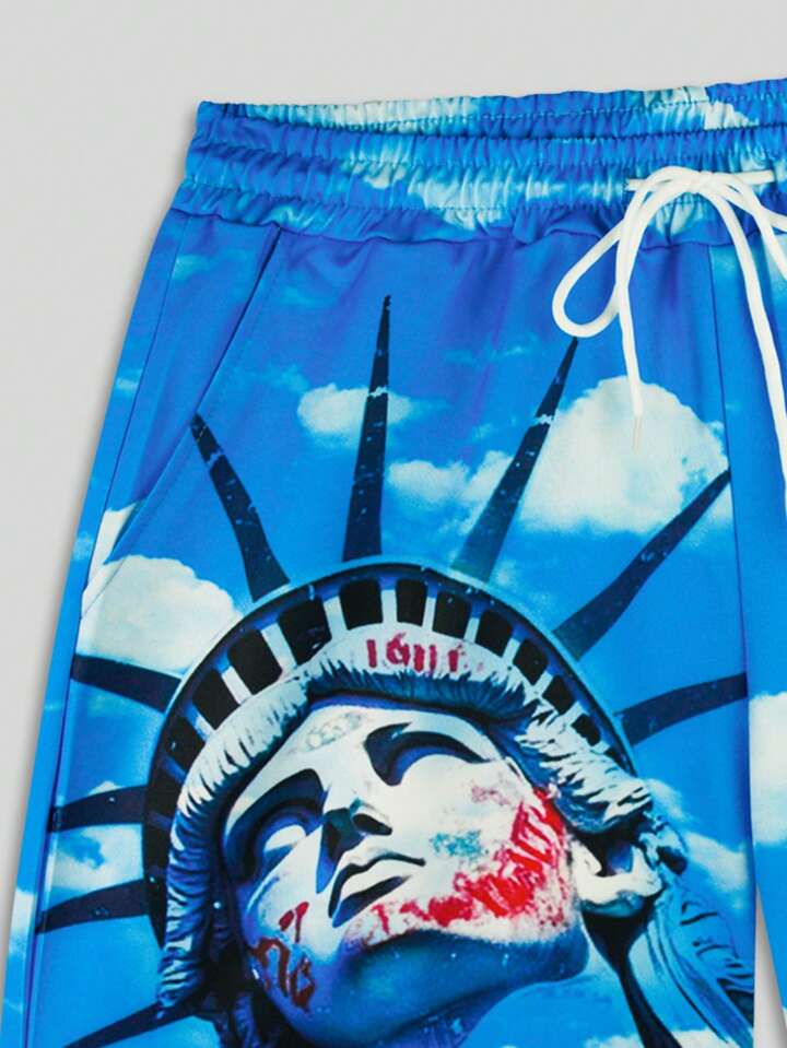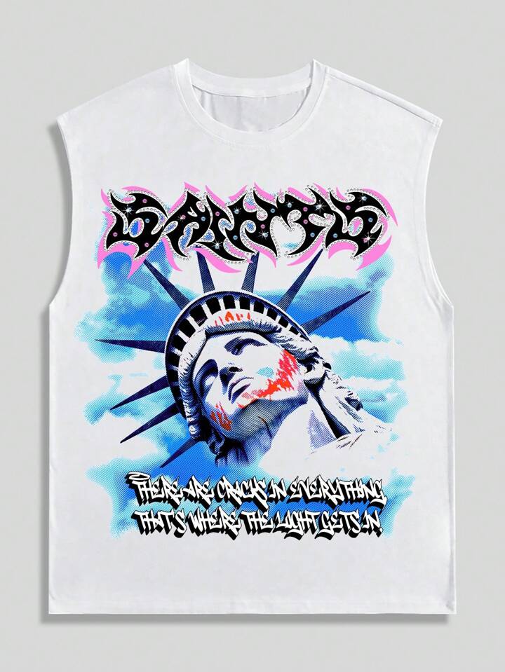 Street Life Conjunto de camiseta de tirantes y shorts con estampado gráfico de la calle Y2K para hombres, adecuado para uso casual en primavera/verano