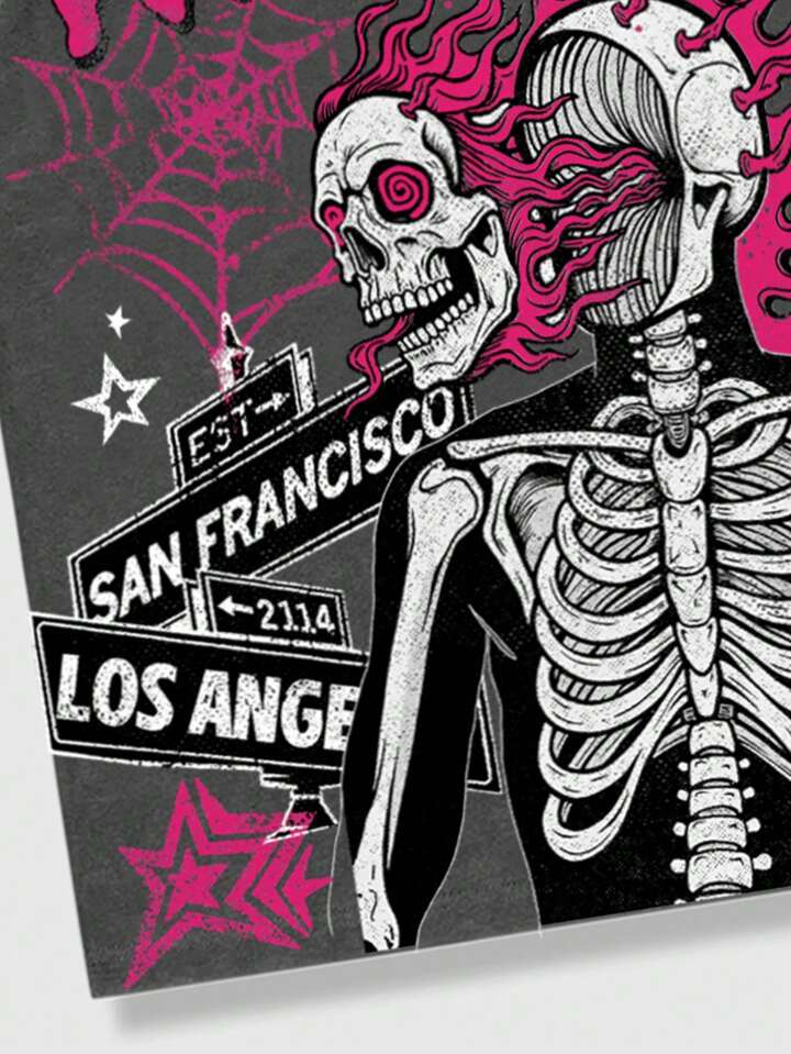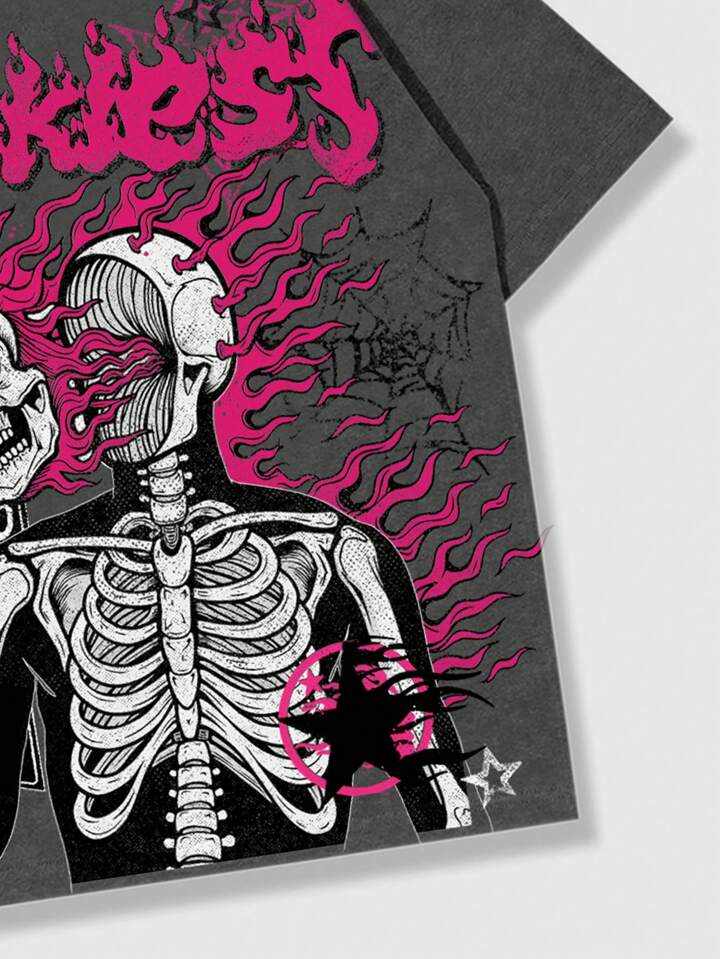 Street Life Camiseta de manga corta para hombres con estampado gráfico de letra y esqueleto, uso diario casual