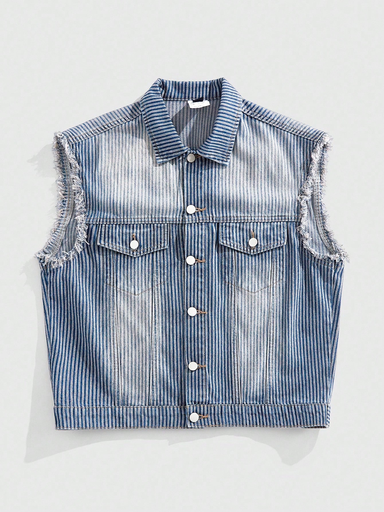 Street Life Chaleco vaquero sin mangas con botones para hombre, estilo urbano