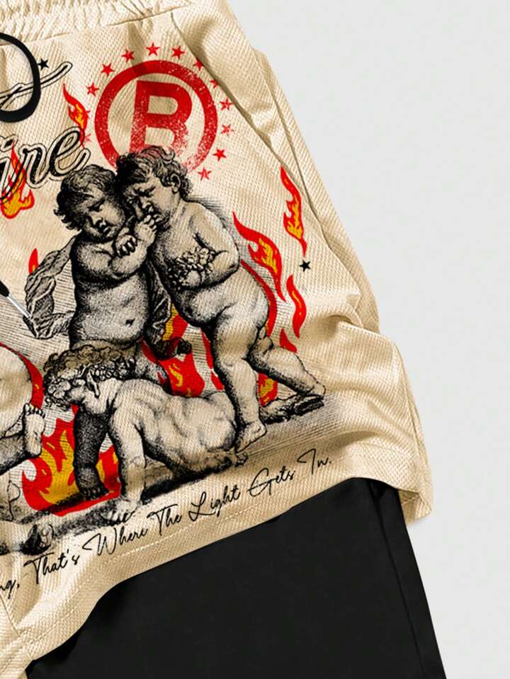 Street Life Pantalones cortos casuales holgados con cintura elástica y estampado gráfico para hombre