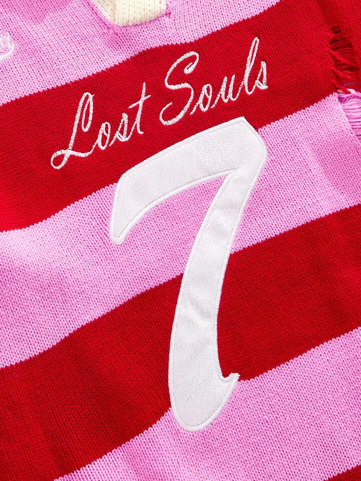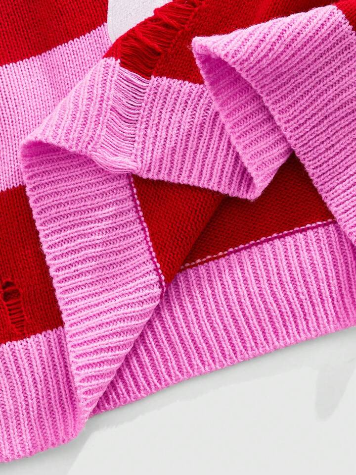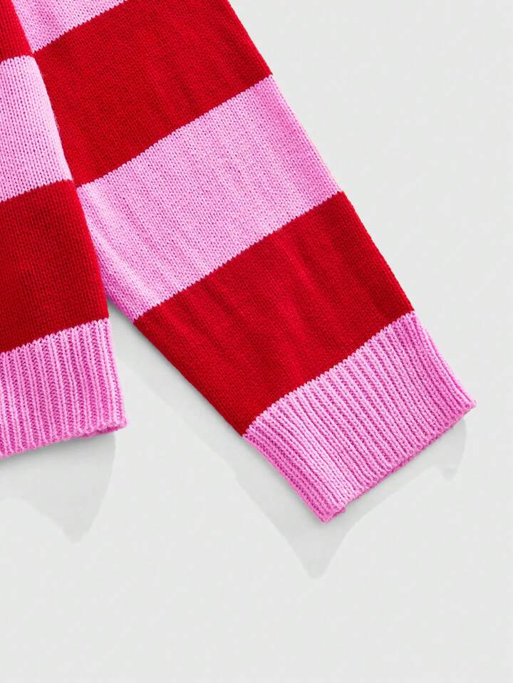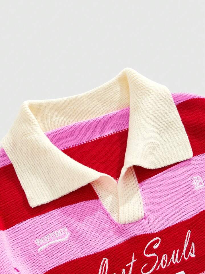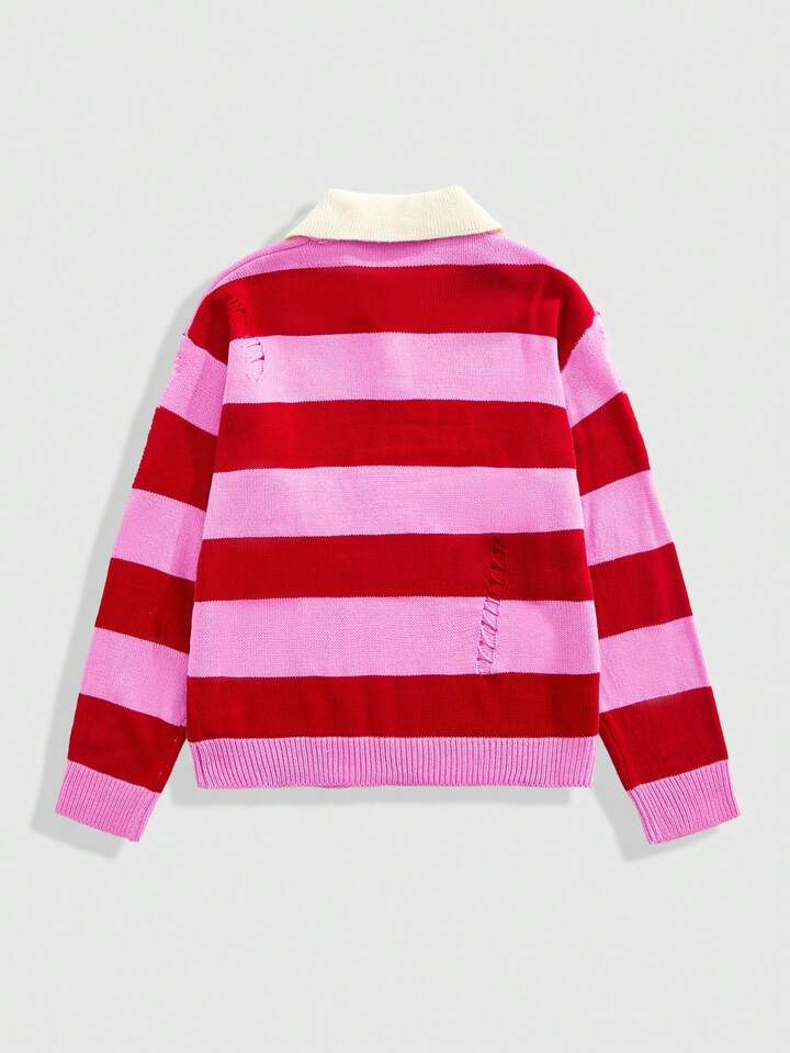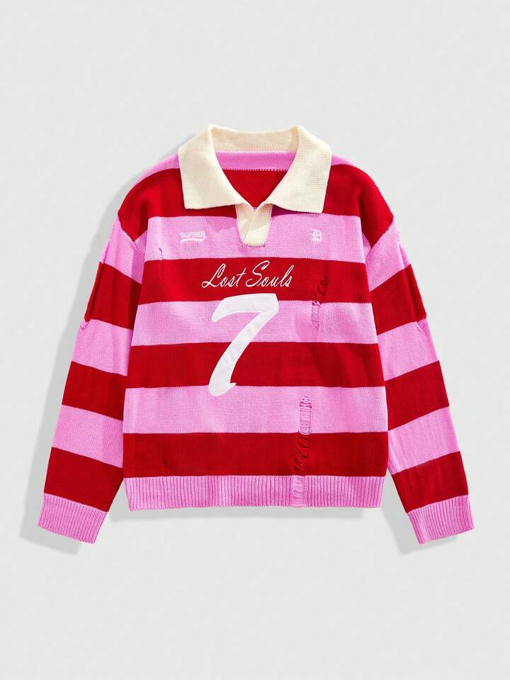 Street Life Suéter de manga larga con rayas bordadas para hombre, corte holgado y acortado