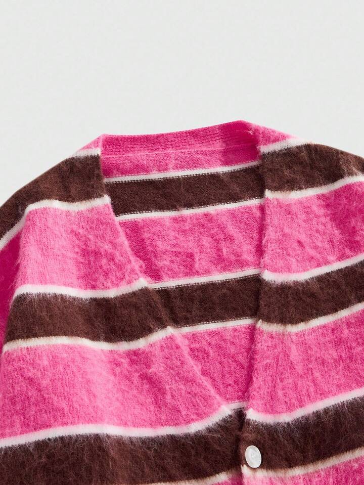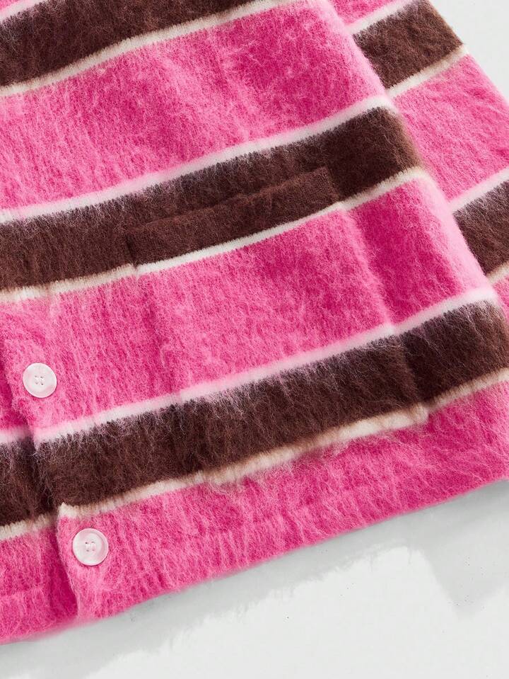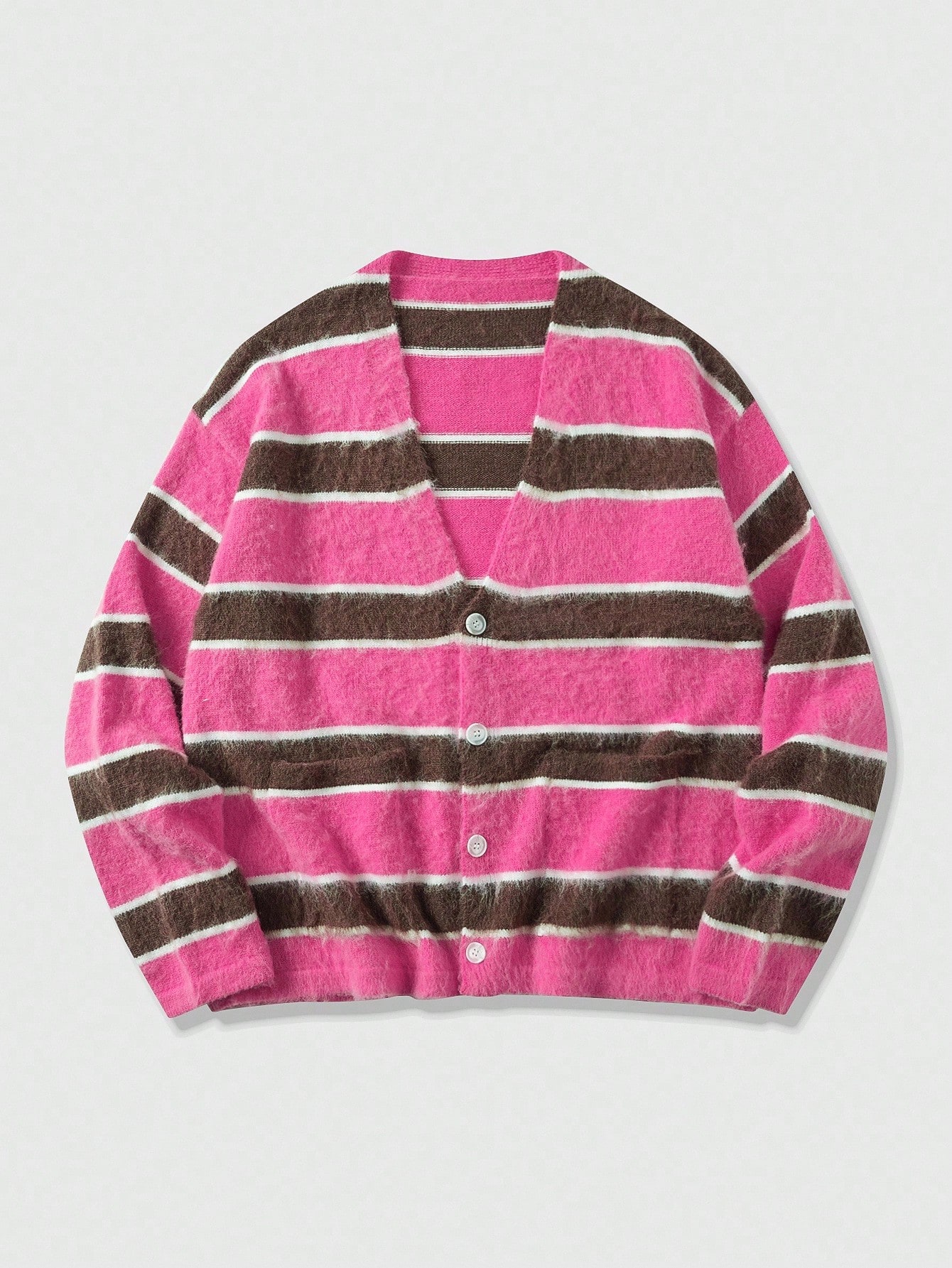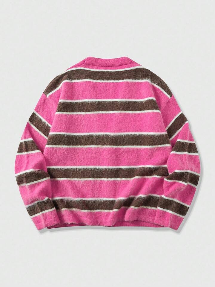 Street Life Cárdigan holgado de punto de manga larga a rayas de un solo botonadura casual para hombre, otoño e invierno