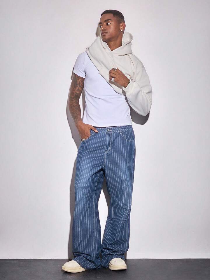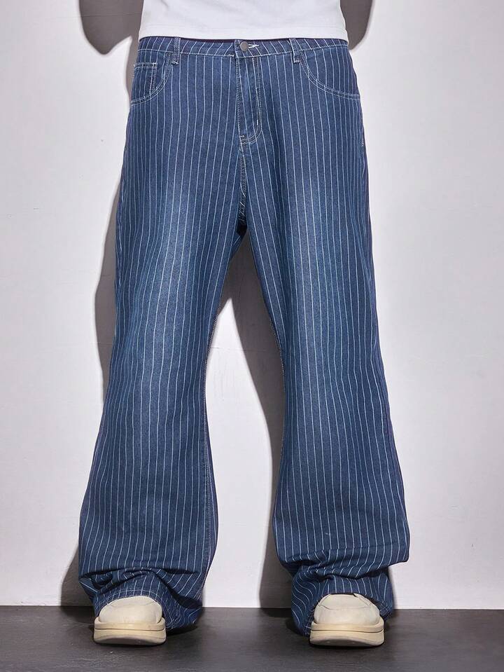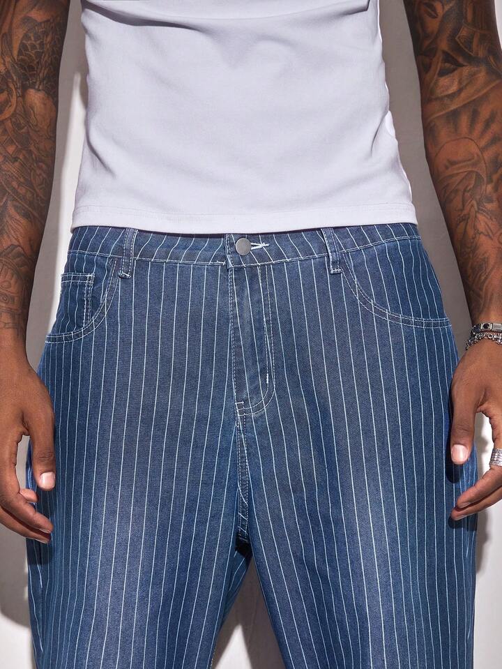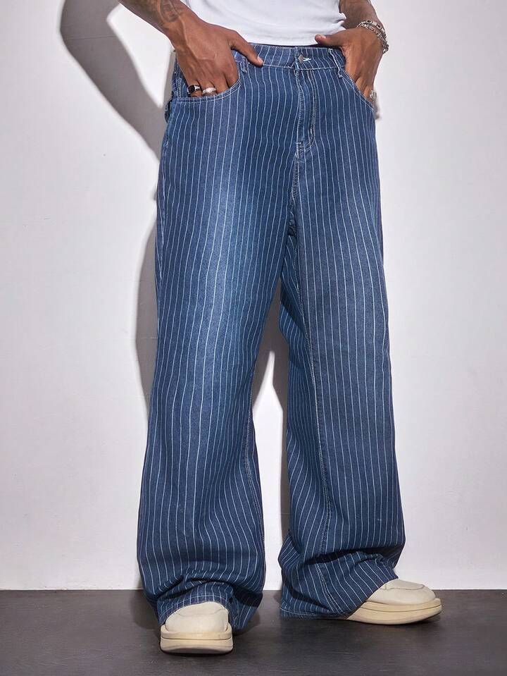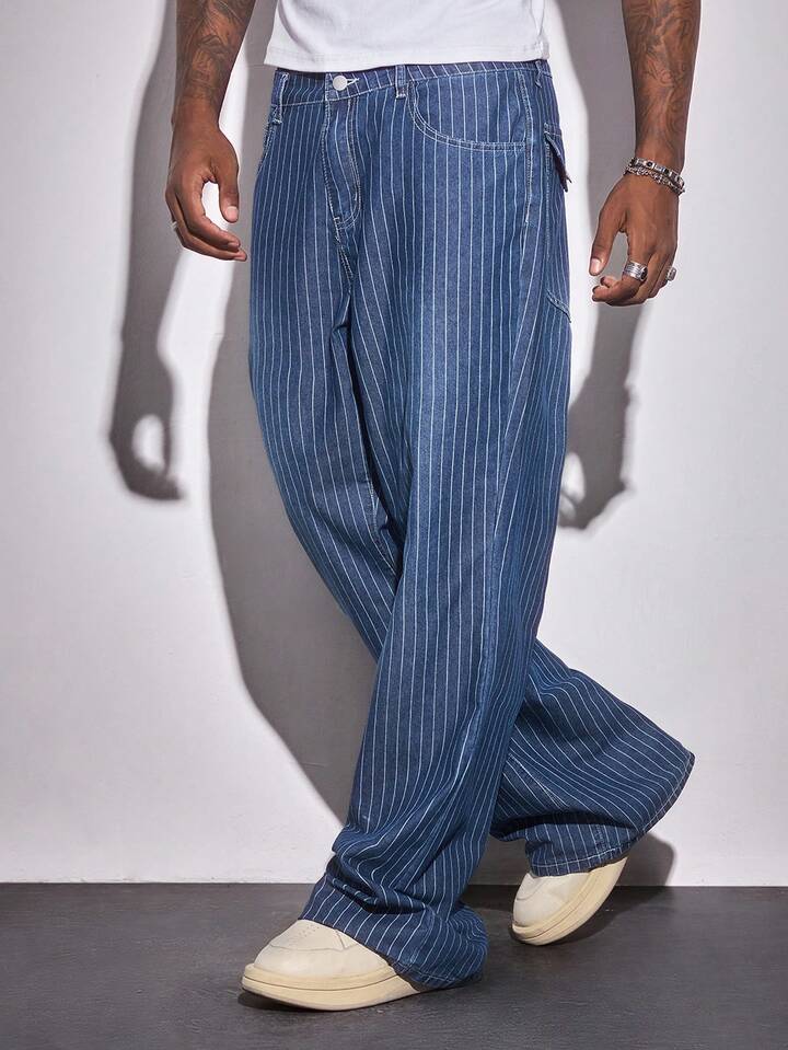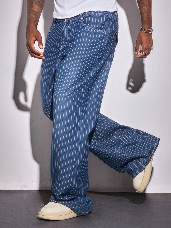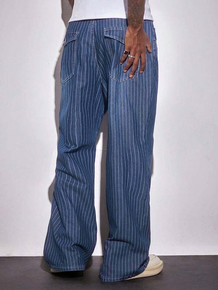 Street Life Jeans casuales holgados de pierna ancha con bolsillo a rayas para hombres