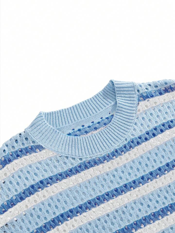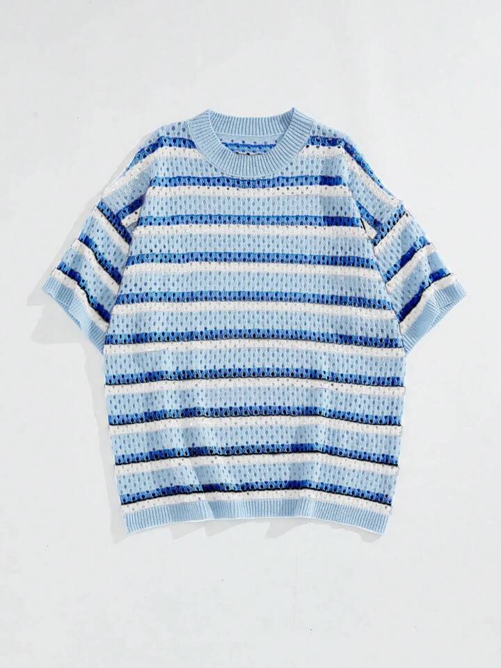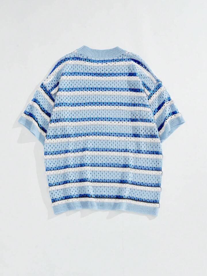 Street Life Camiseta casual de punto de manga corta y cuello redondo con diseño de rayas y calado para hombre