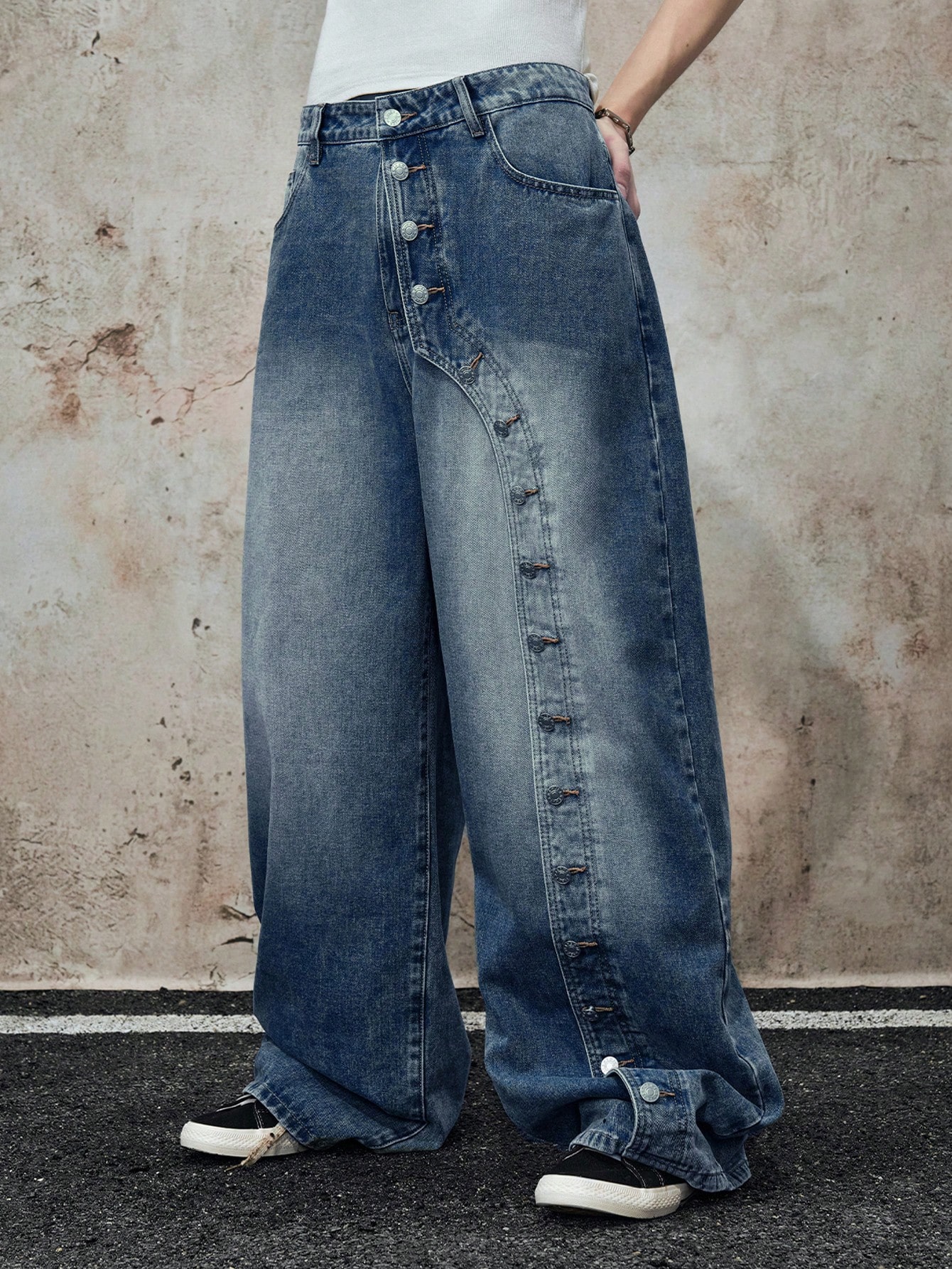 Street Life Jeans rectos de pierna azules con hoja curva estructural para hombres
