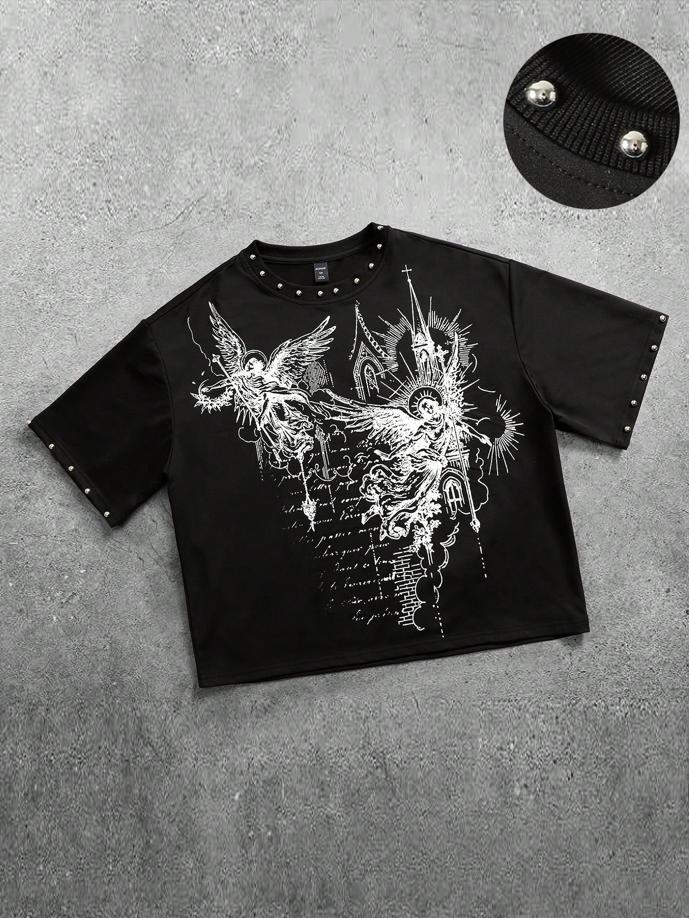 Street Life Camiseta de manga corta con estampado gráfico y tachuelas para hombre