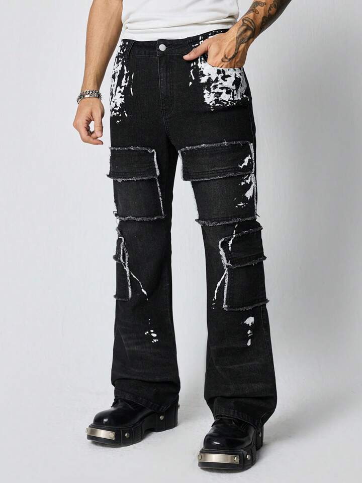 Street Life Pantalones vaqueros de hombre con flecos de color contrastante a la moda