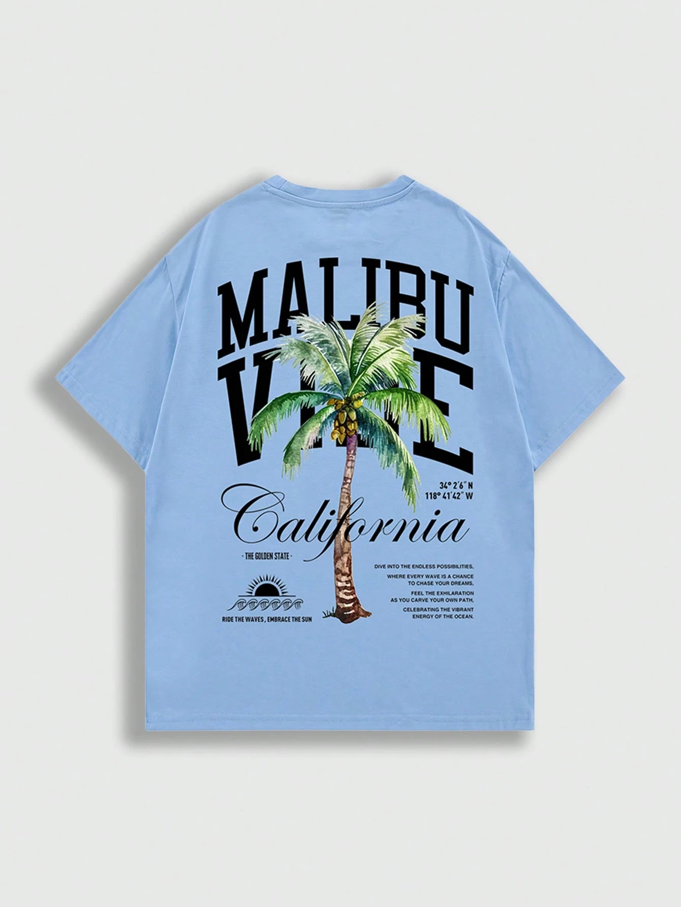 Street Life Camiseta de hombre de verano informal con estampado de lema de árbol de coco