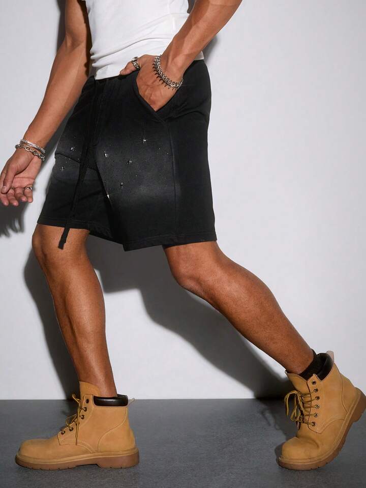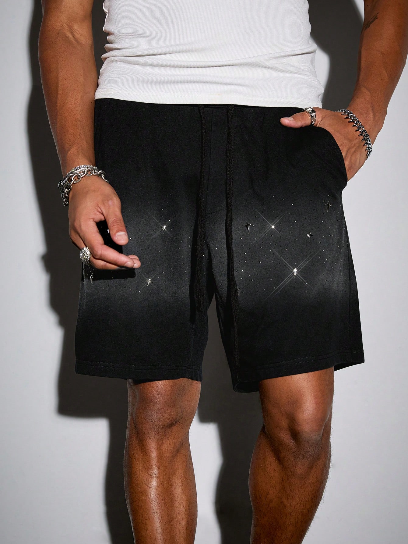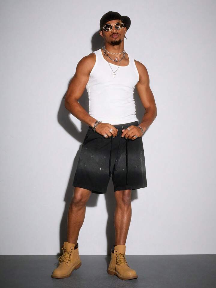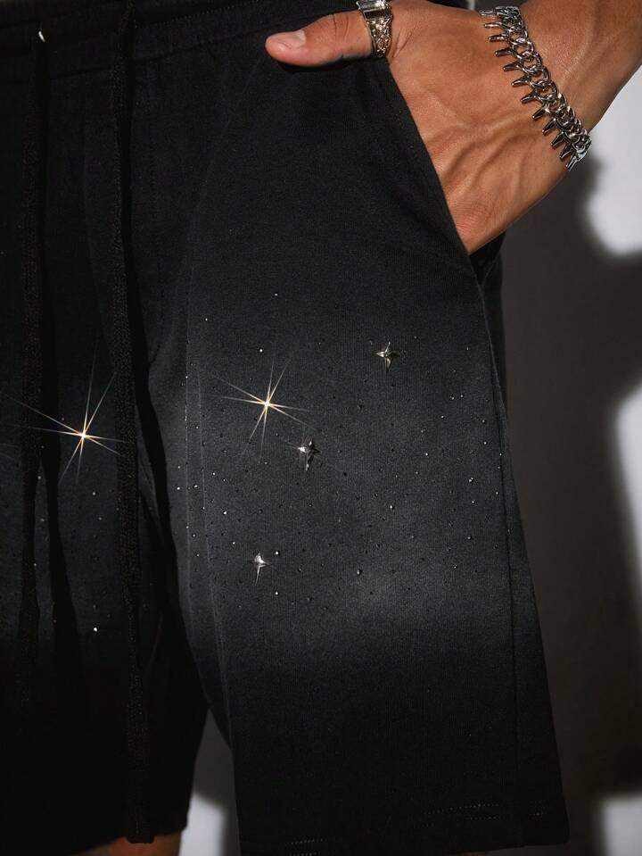 Street Life Shorts cargo de verano casuales para hombres con ajuste holgado y acento de rhinestones en degradado