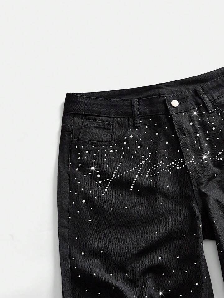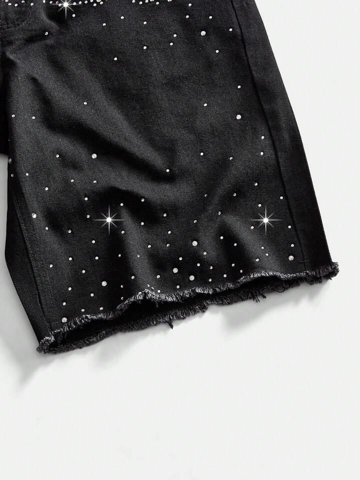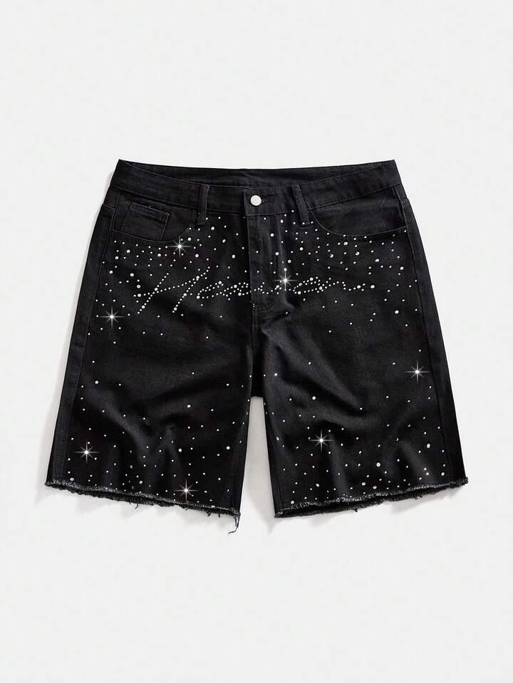 Street Life Pantalones cortos vaqueros de verano casuales para hombres con adornos de rhinestones