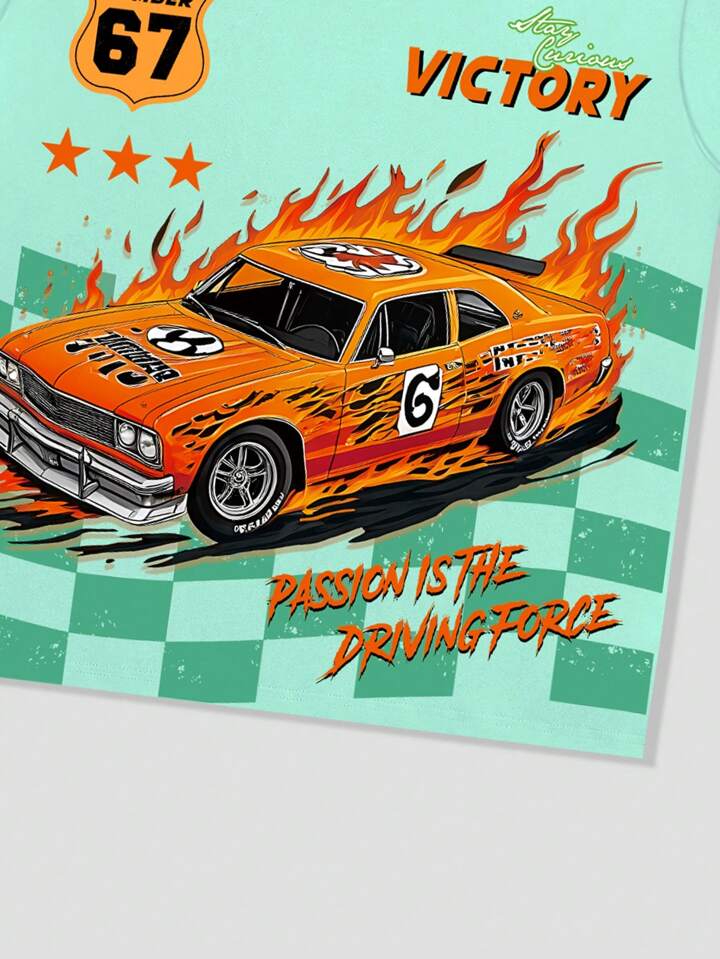 Street Life Camiseta casual de cuello redondo de manga corta con estampado de letras y autos para hombre en verano