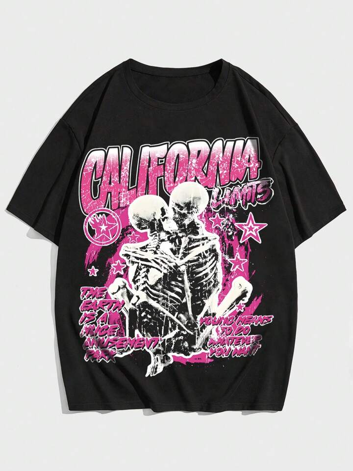 Street Life Camiseta casual de verano de manga corta para hombre con impresión de letra y calavera