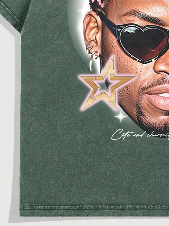 Street Life Camiseta casual de manga corta de cuello redondo con estampado de lema y personaje de verano para hombre, escuela