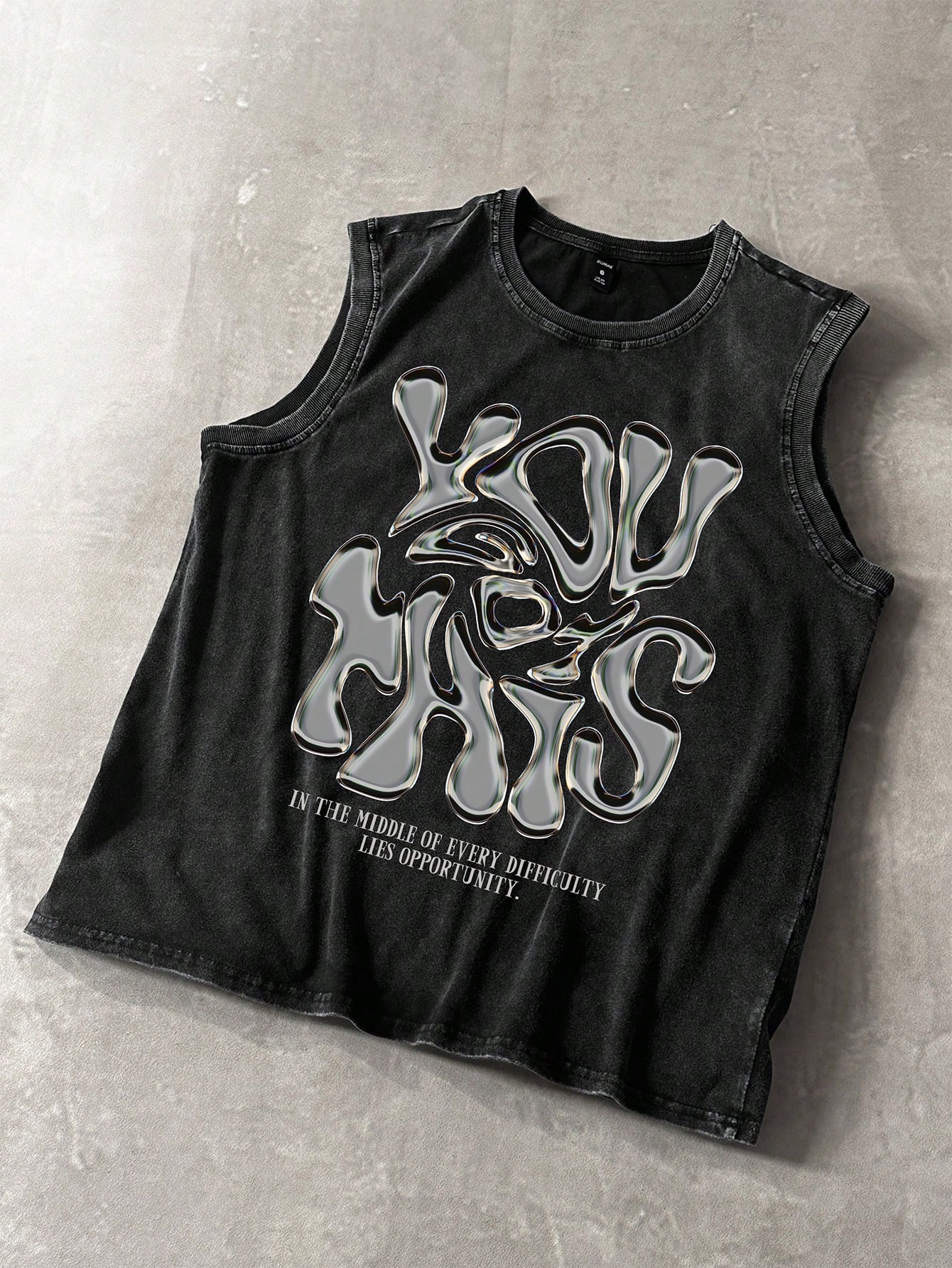 Street Life Camiseta de tirantes informal de verano para hombres con impresión de letras líquidas 3D