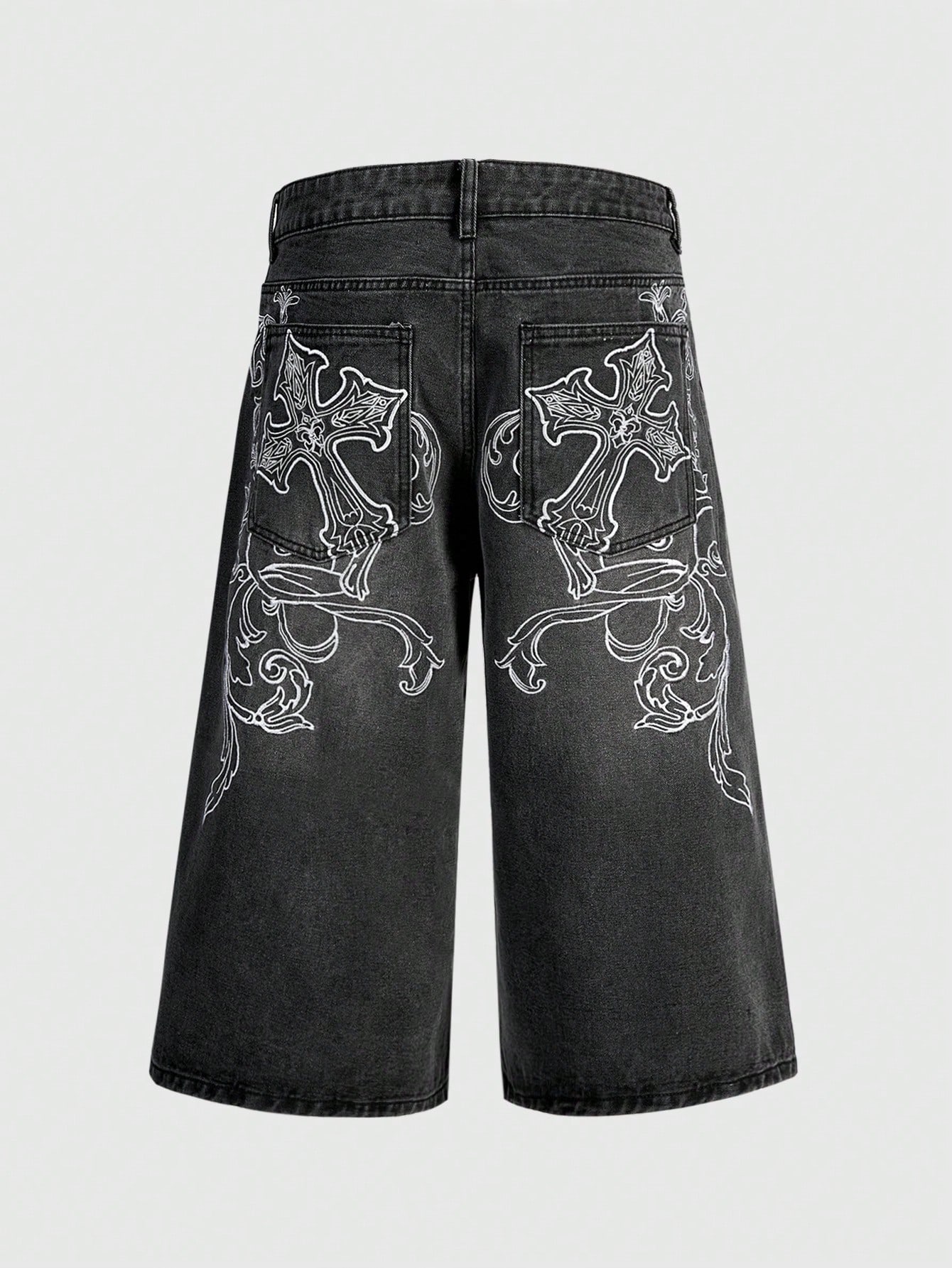 Street Life Shorts vaqueros flojos de verano con estampado cruzado lavados para hombres