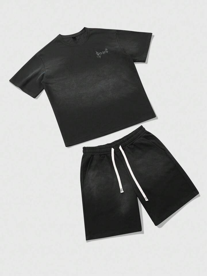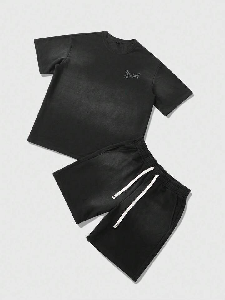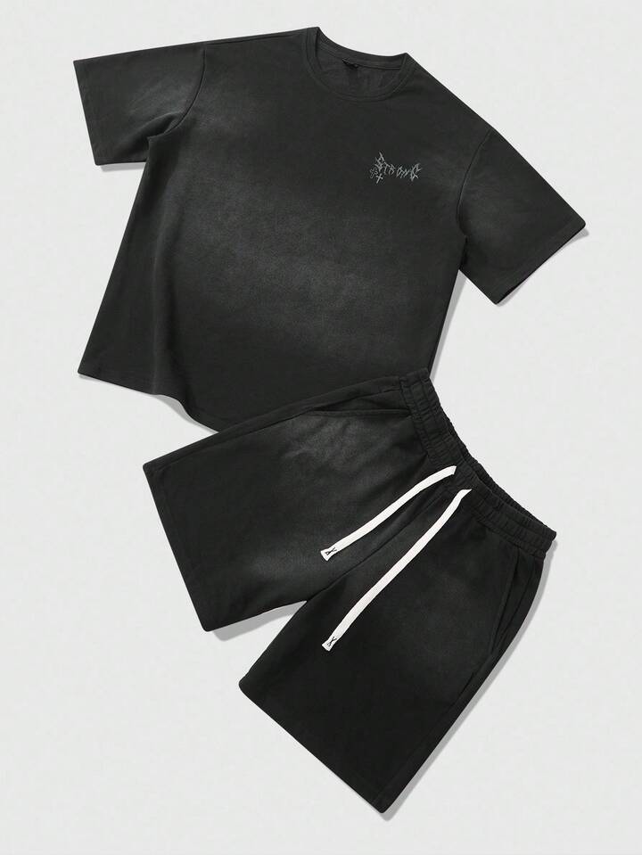Street Life Conjunto de camisetas para hombre, diseño americano de calle con efecto cebra, estampado gráfico en inglés, conjunto de manga corta