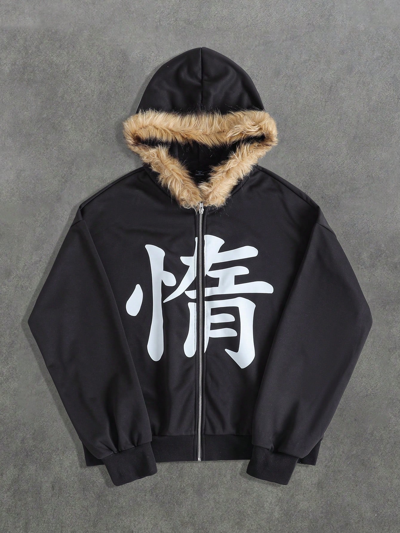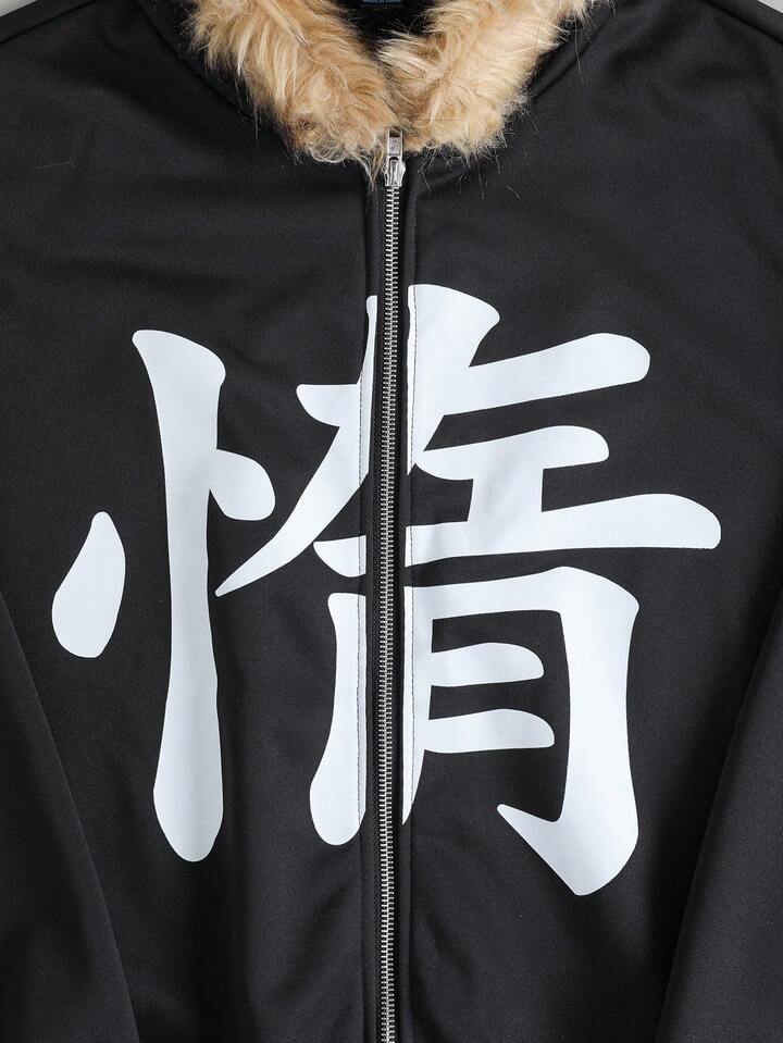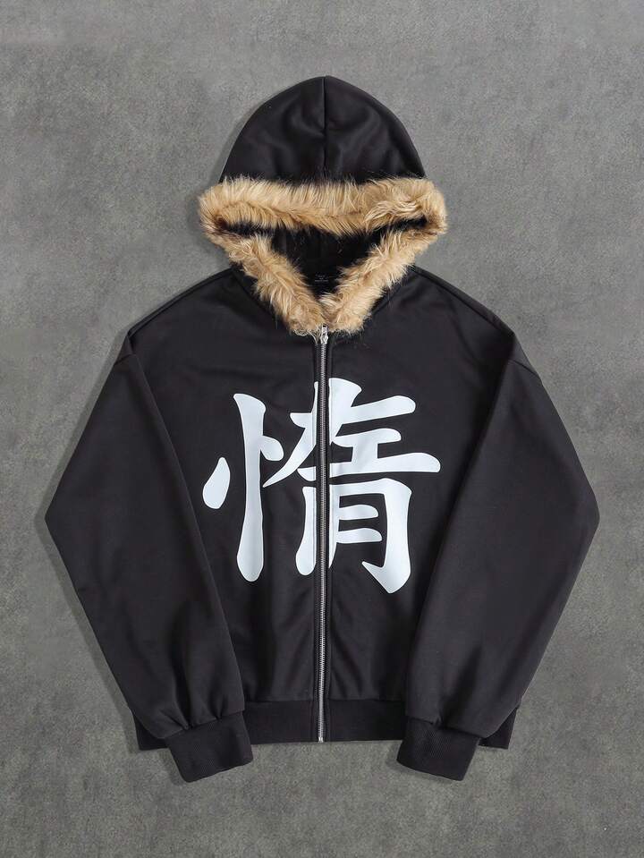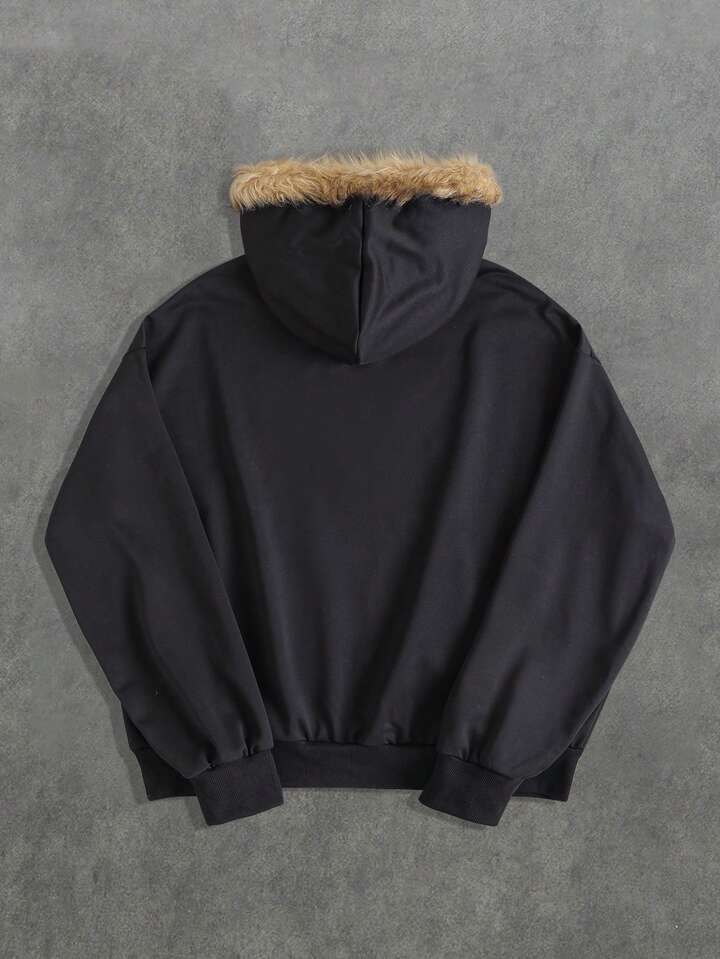 Street Life Sudadera con cuello de felpa con estampado de texto para hombres, corte holgado