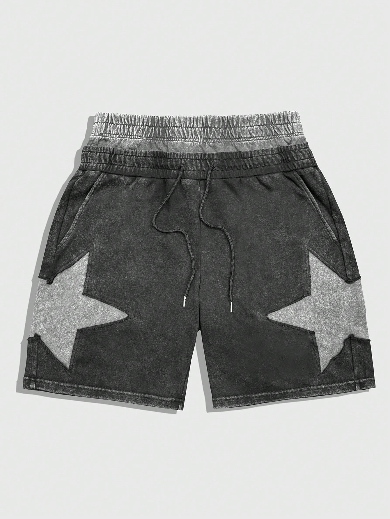 Street Life Pantalones cortos casuales vintage para hombres con estampado de estrella en color contrastante