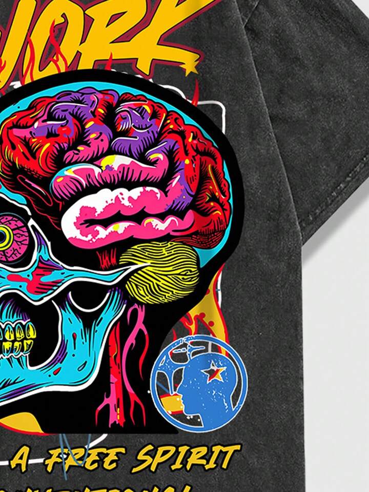 Street Life Camiseta de manga corta con estampado de graffiti vintage, lavado químico y copos de nieve para hombre, ropa urbana, verano, escuela