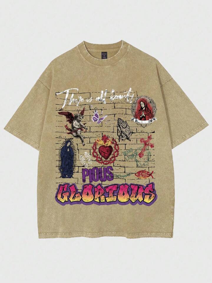 Street Life Conjunto de camiseta de manga corta con estampado de coche de carreras vintage lavada para hombres, de estilo urbano