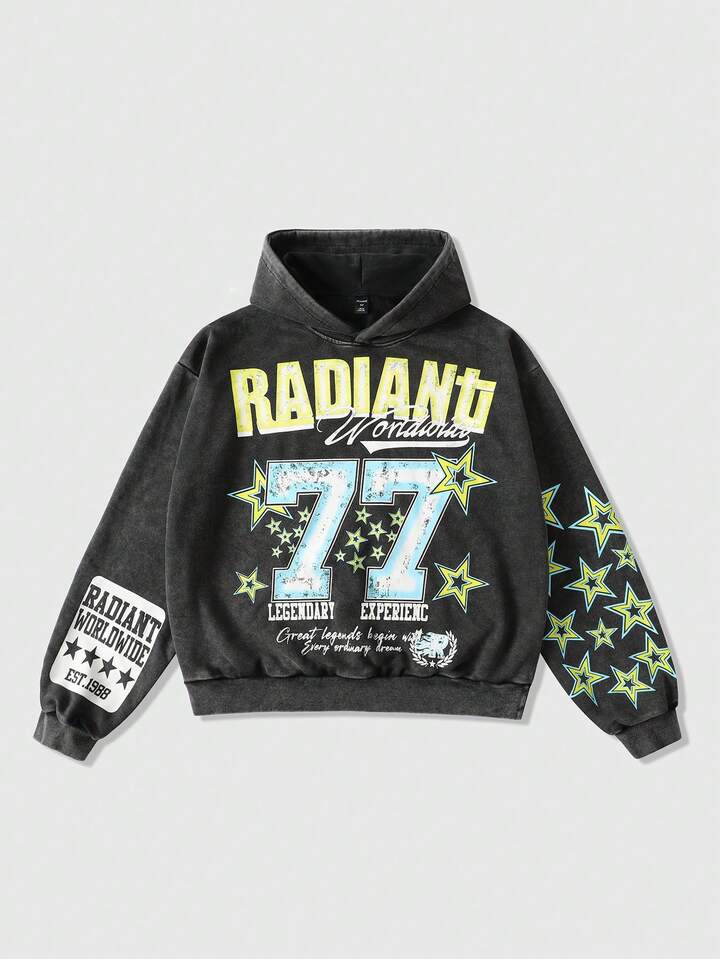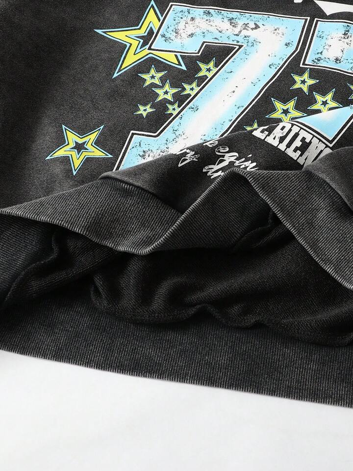 Street Life Sudadera corta con capucha lavada vintage No.77 para hombre, estilo streetwear, top de manga larga