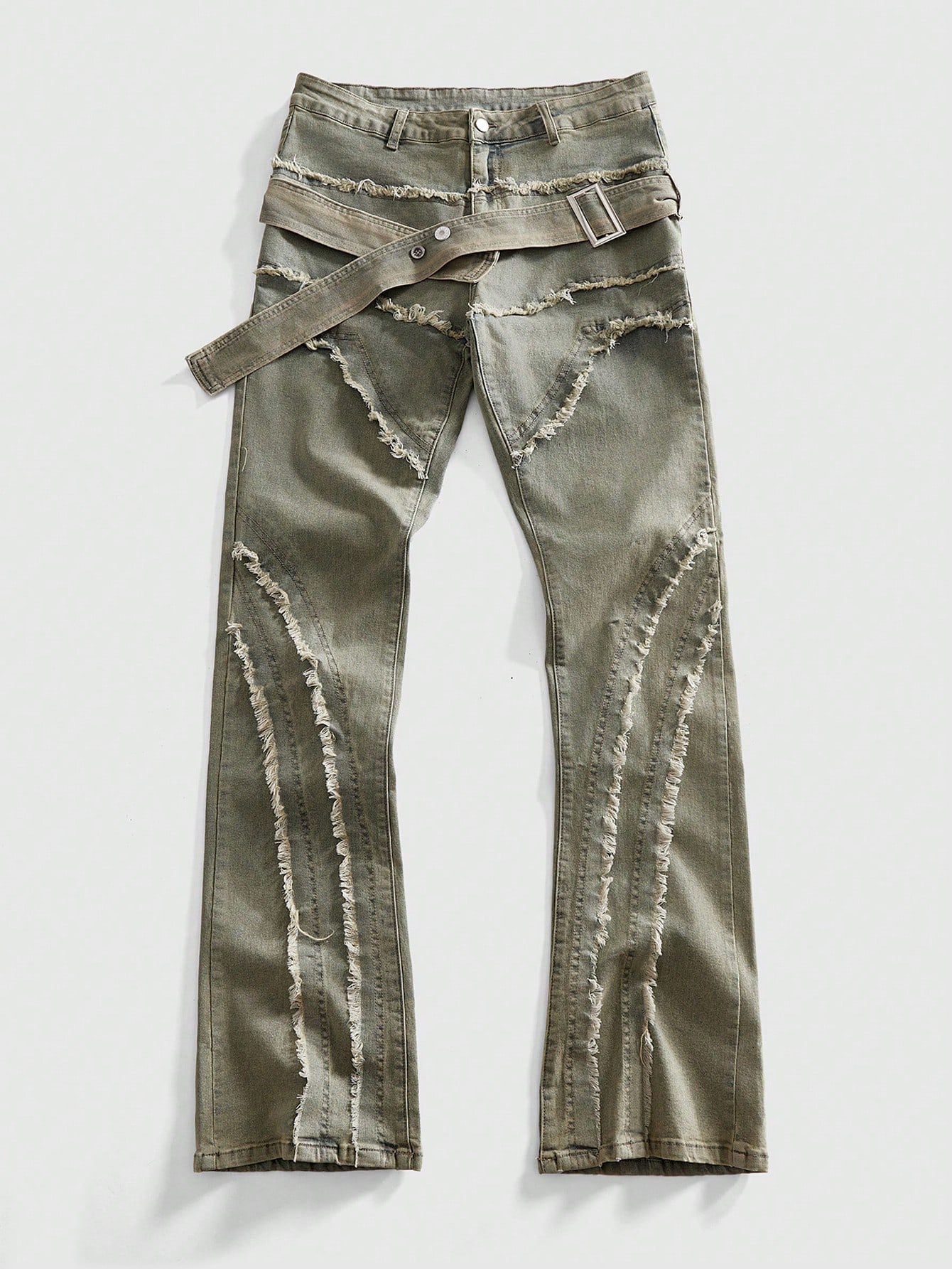 Street Life Jeans de mezclilla con diseño de hebilla en la cintura, desgastados y con capas