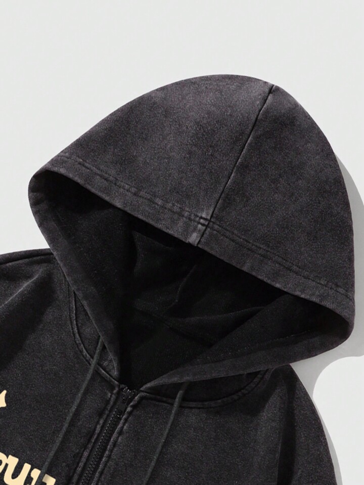 Street Life Sudadera con capucha de manga larga con cremallera, cuello alto, eslogan lavado y estampado de calavera, para hombre, otoño
