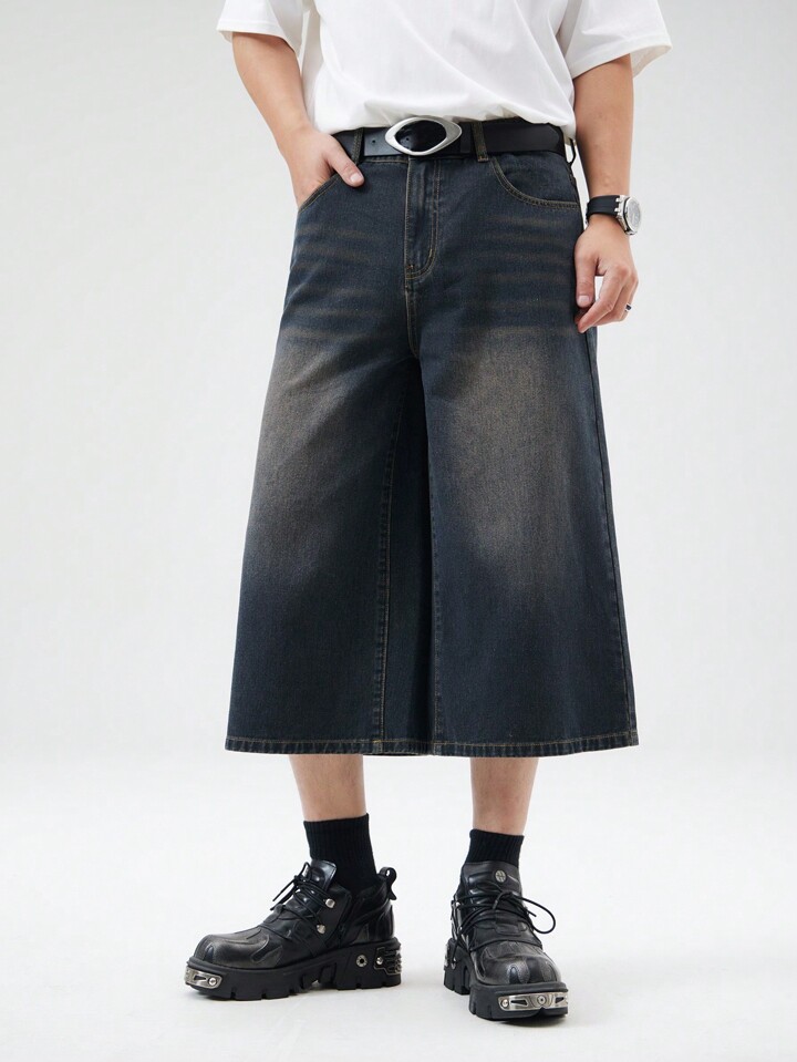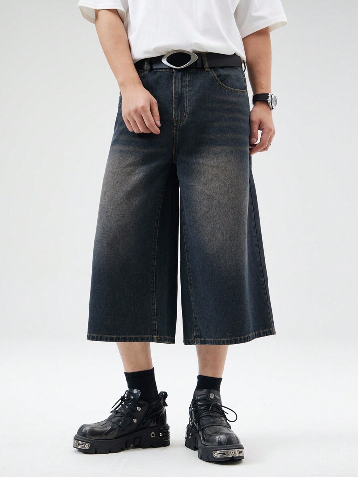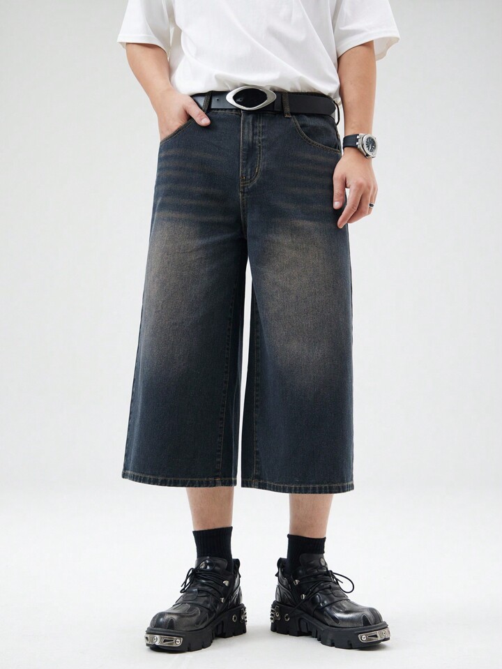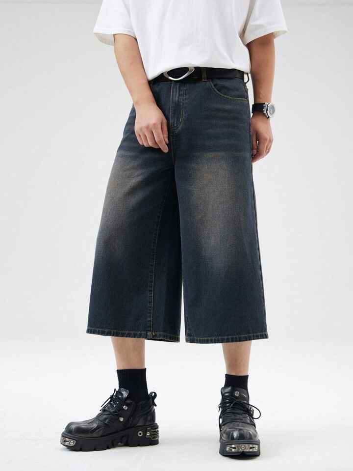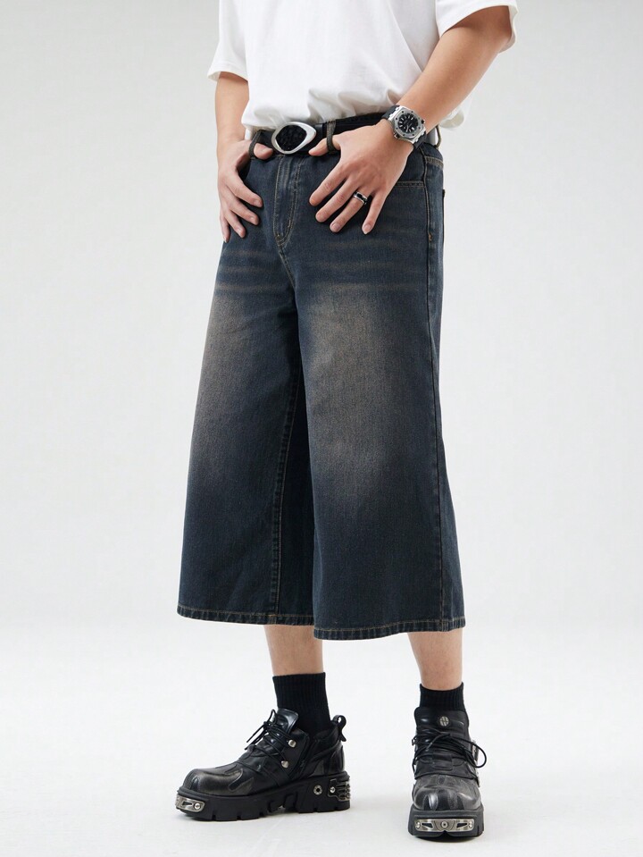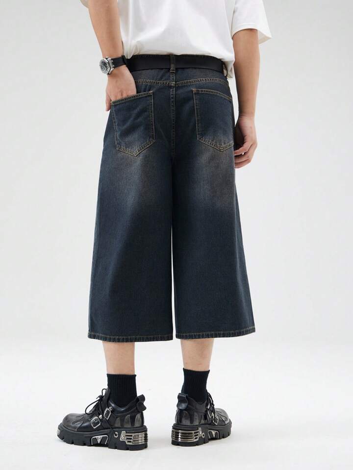 Street Life Pantalones cortos holgados de mezclilla con lavado de agua y bolsillos oblicuos para hombres, escolar