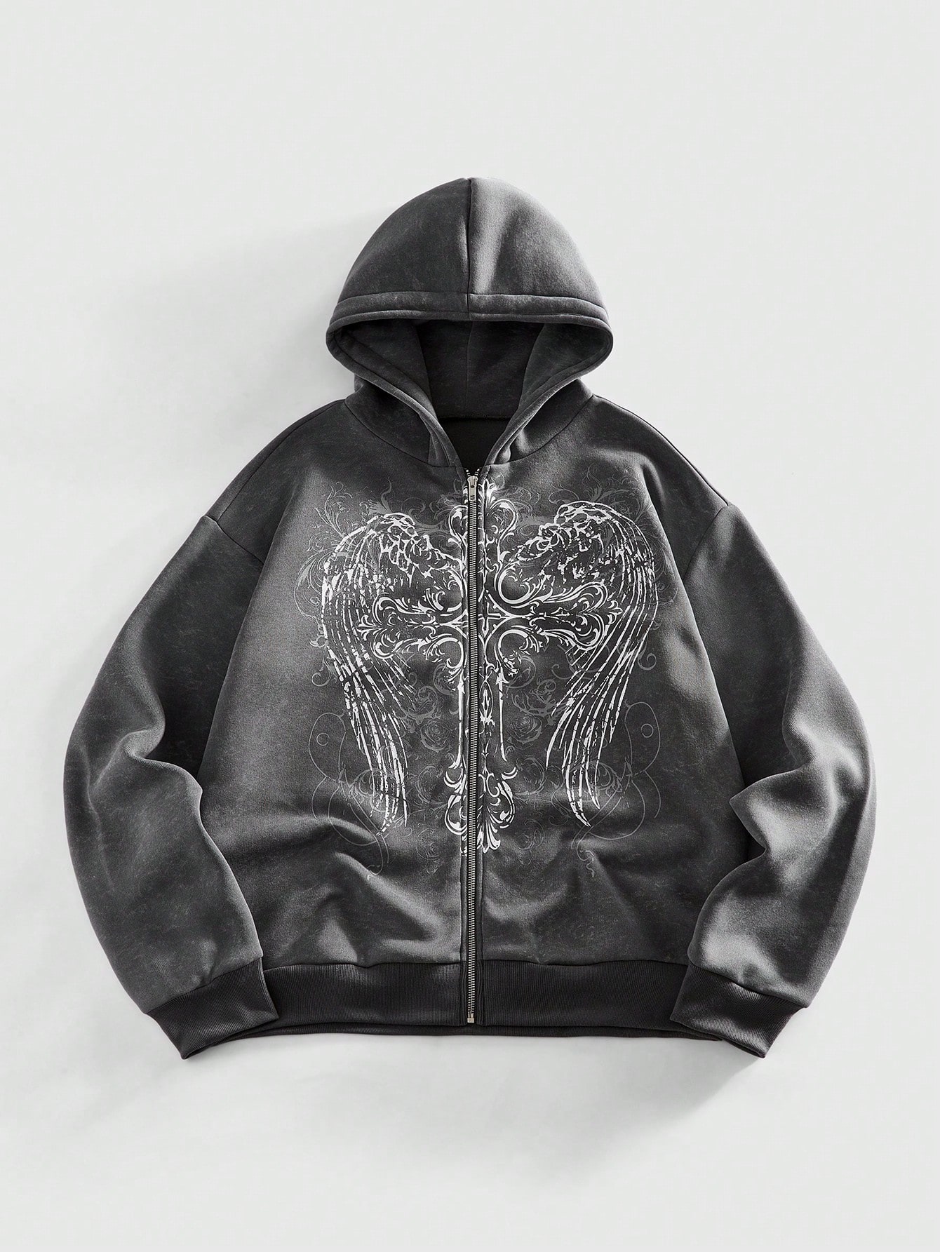 Street Life Sudadera con capucha con estampado de alas para hombre