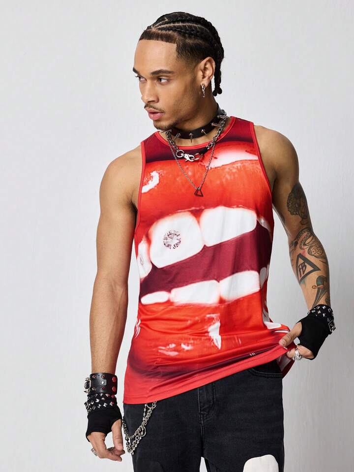 Street Life Camiseta de tirantes informal con estampado gráfico y cuello redondo para hombre, versátil