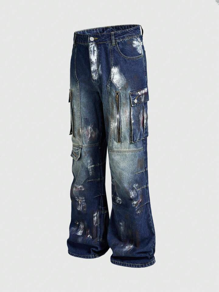 Street Life Pantalones vaqueros de mezclilla casuales con cierre de cremallera para hombres, minimalistas y de moda para uso diario