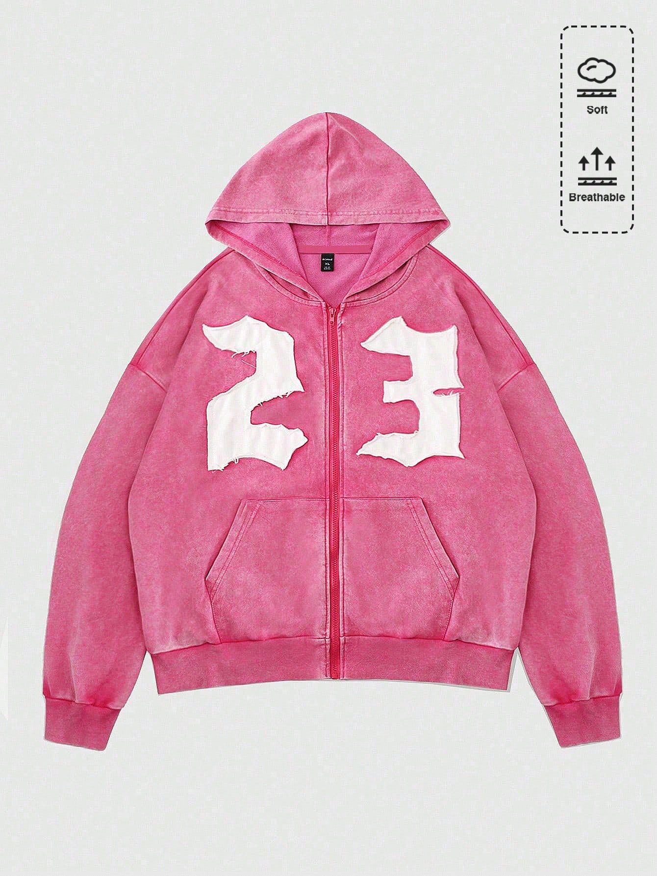 Street Life Sudadera casual de moda de calle para mujer de talla grande con parche bordado con número, con cremallera, para primavera/otoño