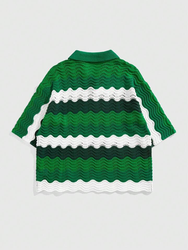 Street Life Camisa de punto holgada a rayas para hombre, top de manga corta de punto, polo de punto casual para vacaciones