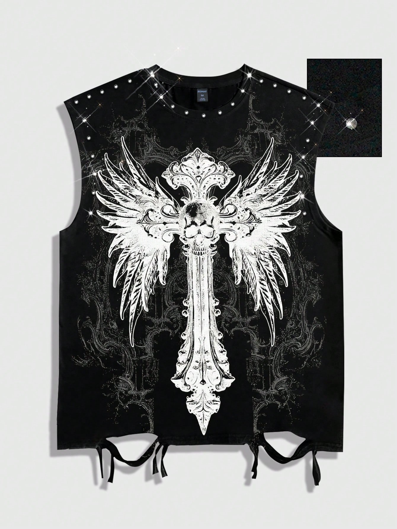 Street Life Camiseta de tirantes con cuello redondo, estampado gráfico, detalles con strass y desgastados, estilo punk callejero, para hombre en verano