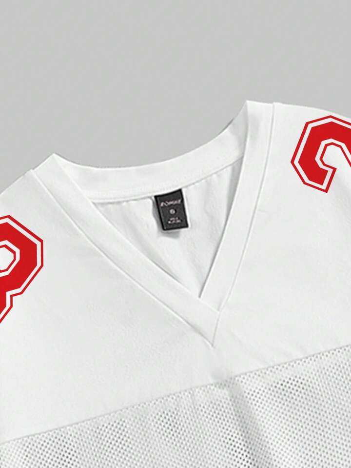 Street Life Camiseta de manga corta holgada de señoras con estampado de malla en todo el blanco y rojo