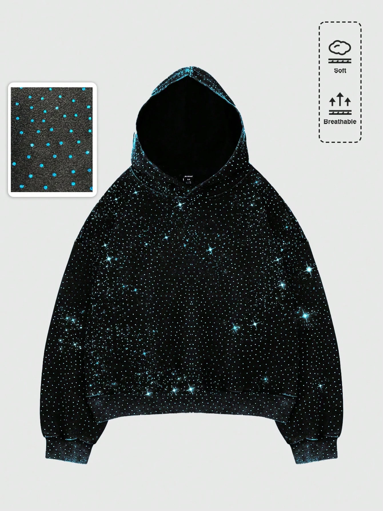 Street Life Sudadera con capucha holgada y corta con estampado de diamantes para hombre, estilo urbano