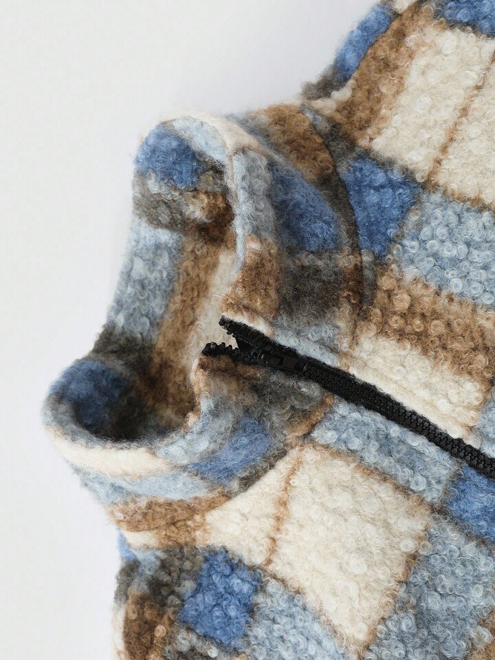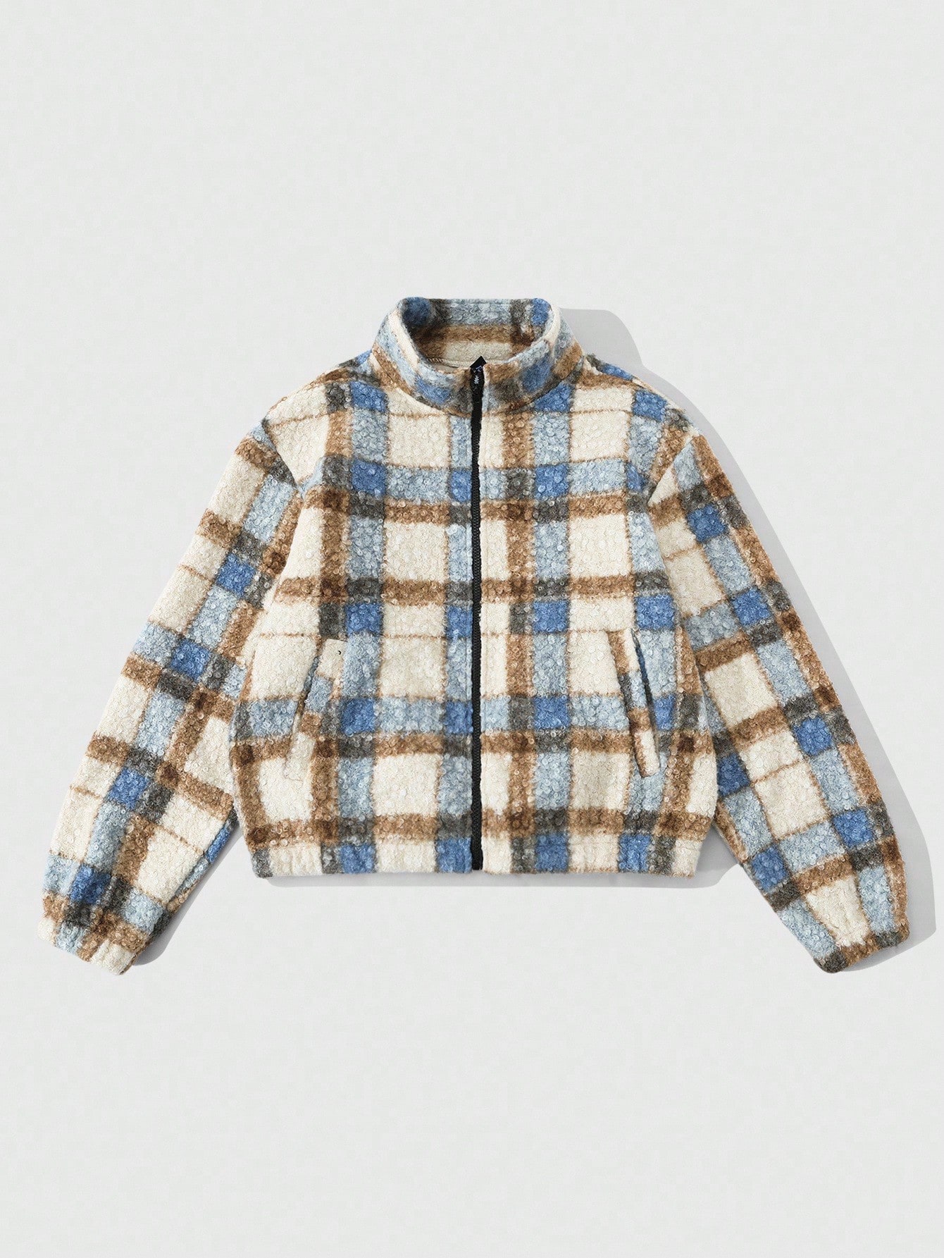 Street Life Chaqueta de tweed a cuadros unisex, estilo callejero casual americano, otoño/invierno