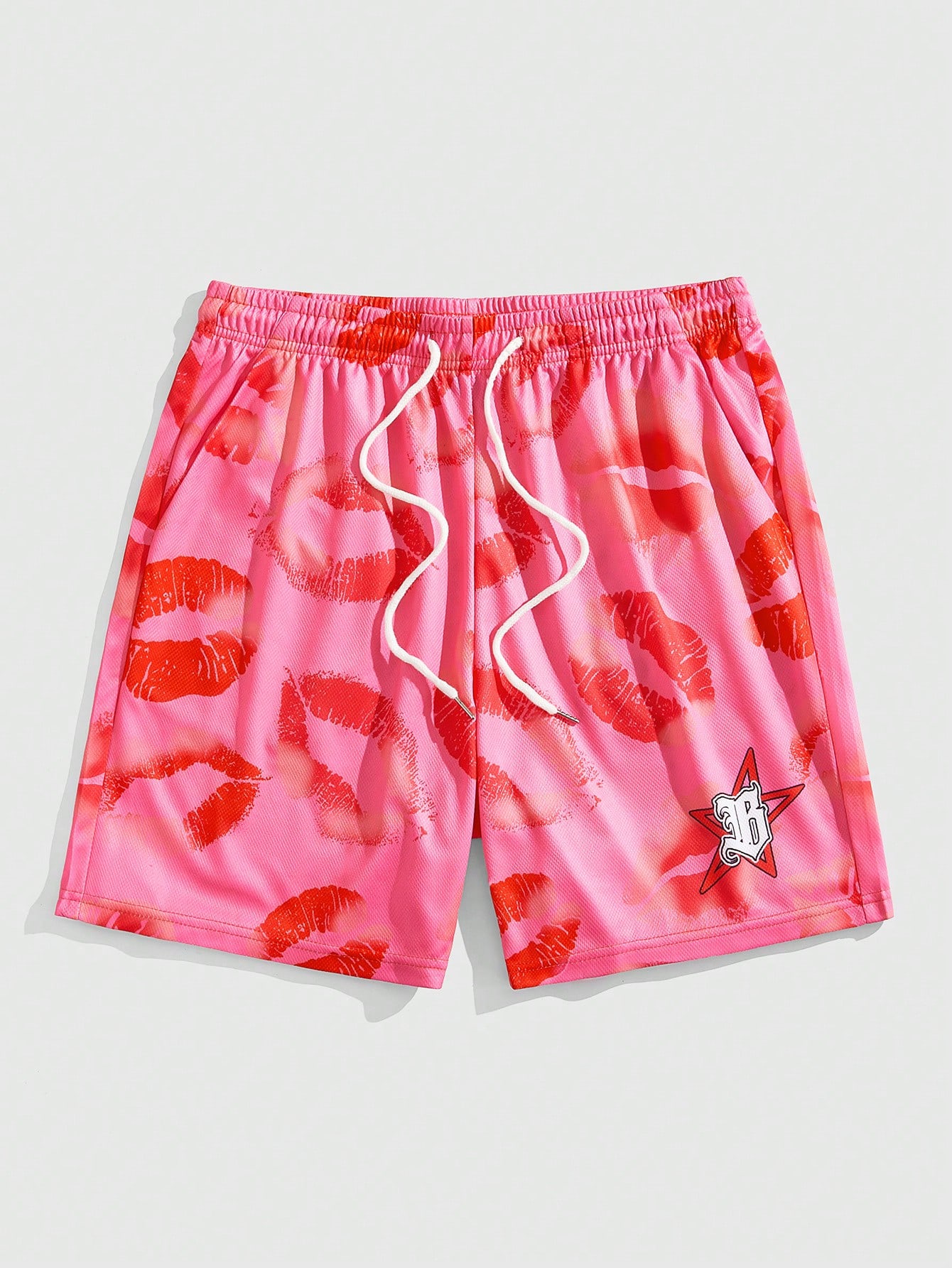 Street Life Pantalones cortos de malla estampados con diseño para el Día de San Valentín, para hombres, primavera/verano