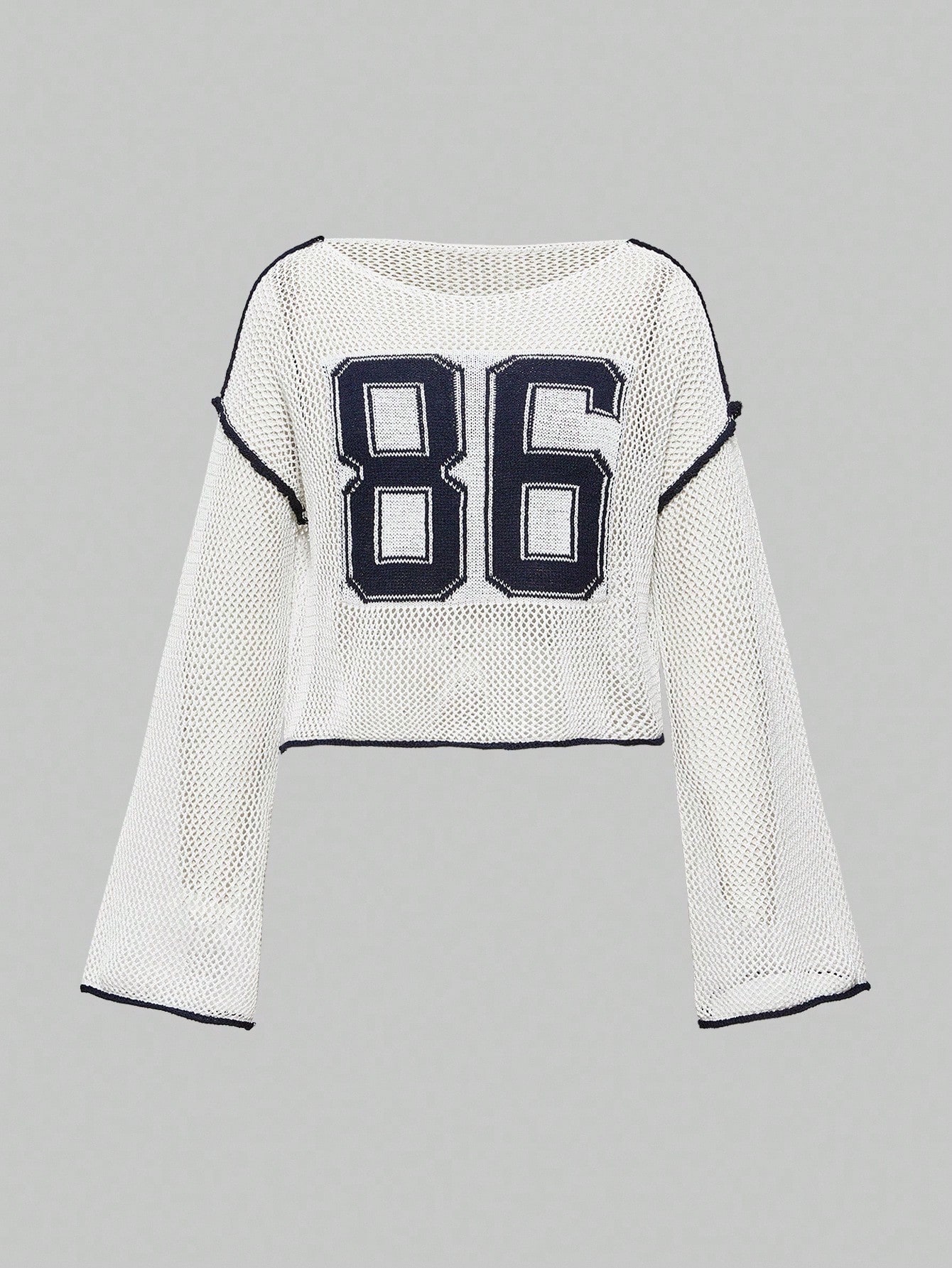 Street Life Suéter de punto de mujer con estampado jacquard numérico hueco, estilo callejero estadounidense versátil y vintage