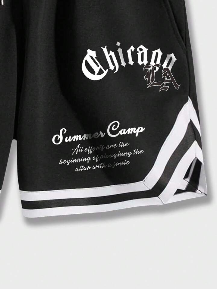 Street Life Pantalones cortos de mujer con cordón y estampado de lema, adecuados para uso diario en primavera/verano