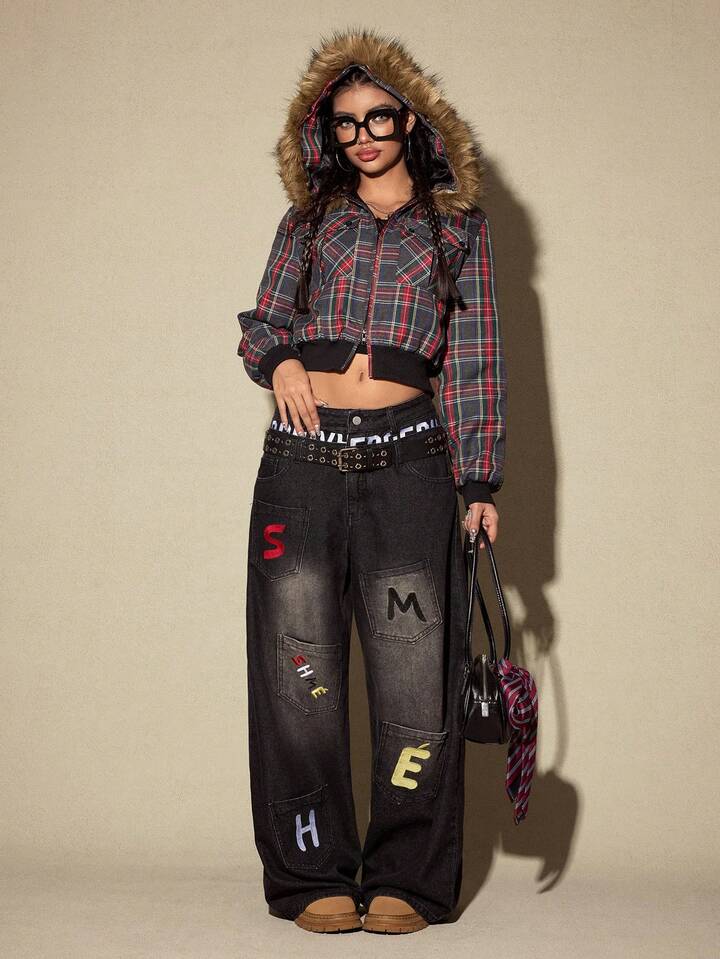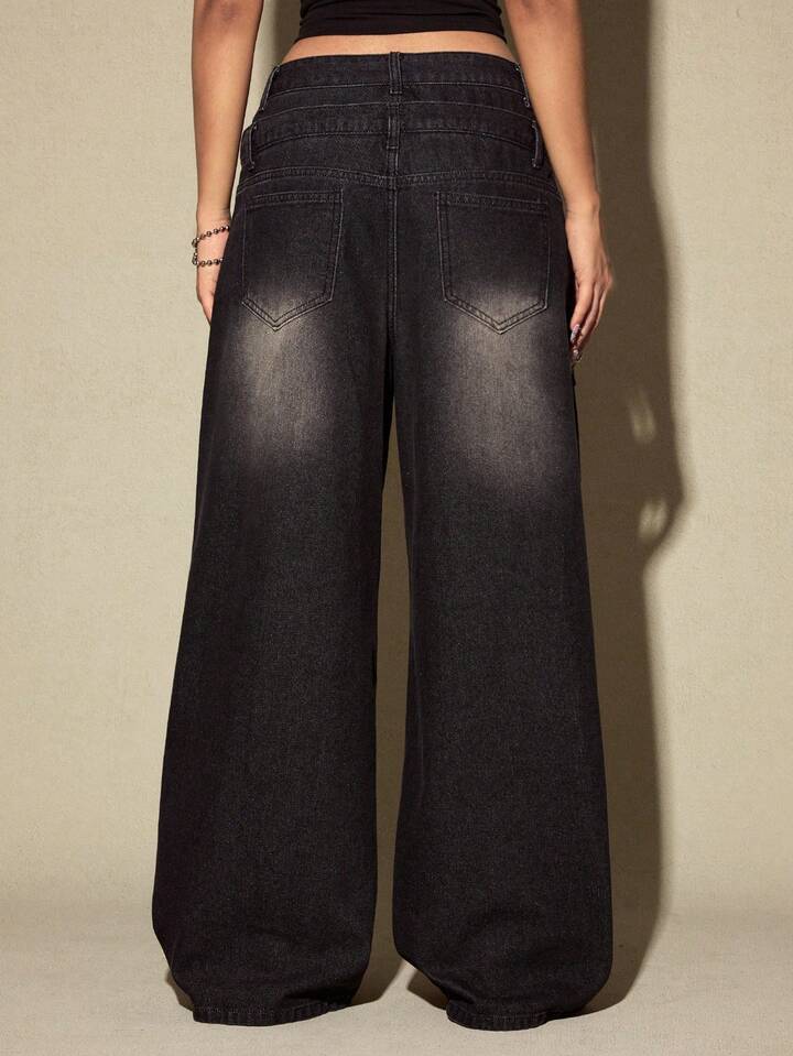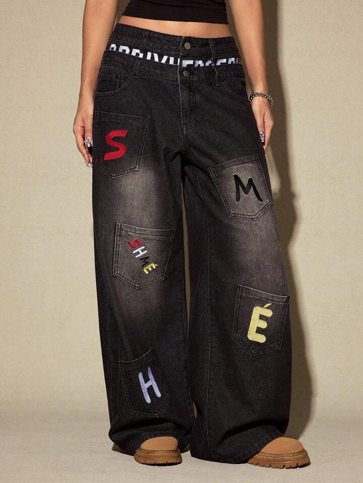 Street Life Jeans de corte holgado con diseño de bolsillo bordado y talle bajo, estilo streetwear Y2K