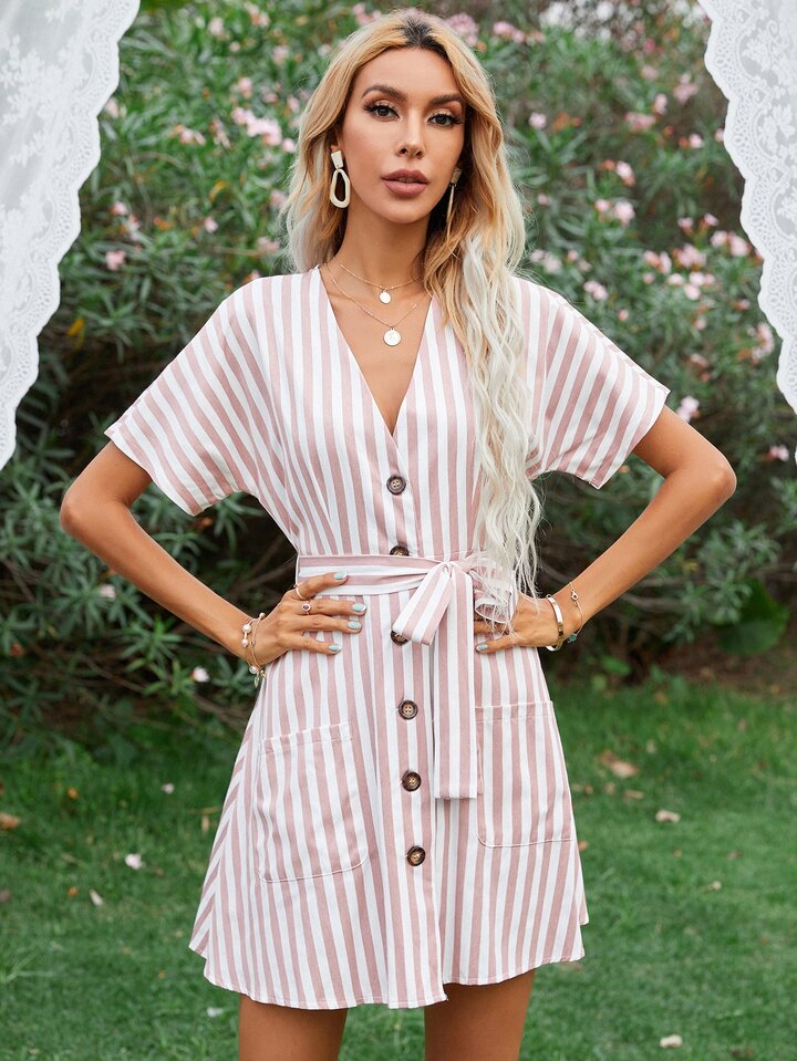 Vestido Bolsillo A rayas Casual