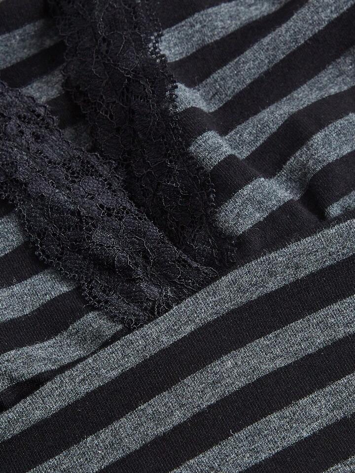 Camiseta de rayas con encaje en contraste