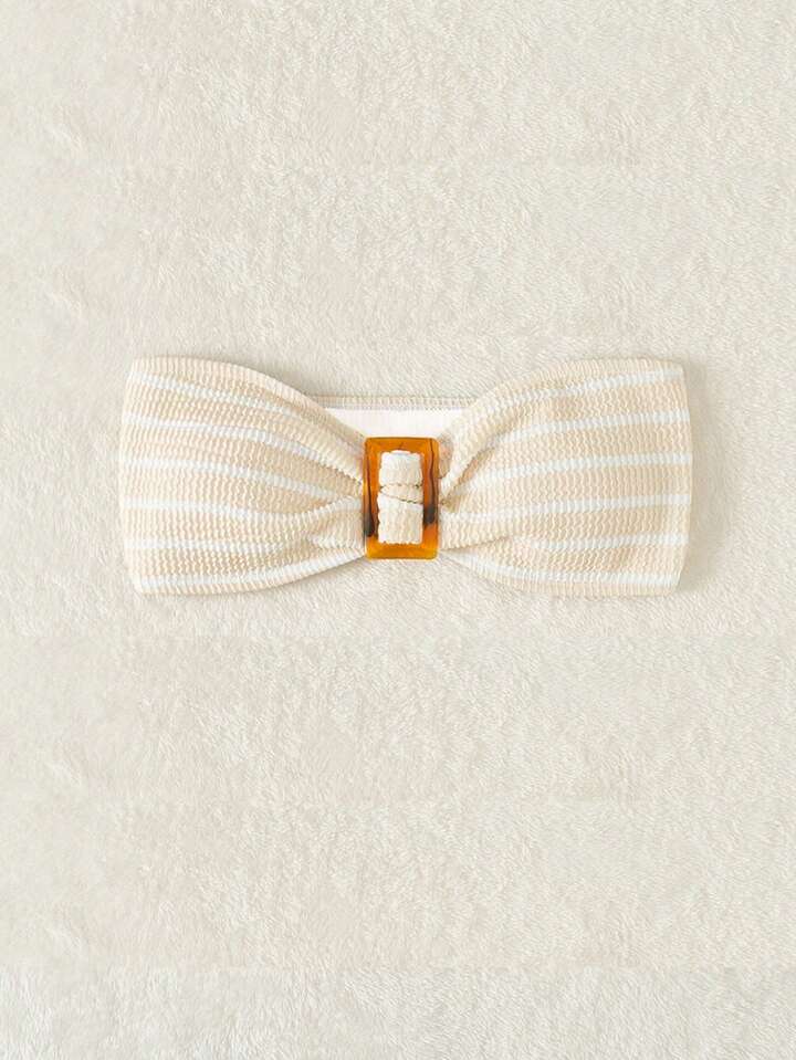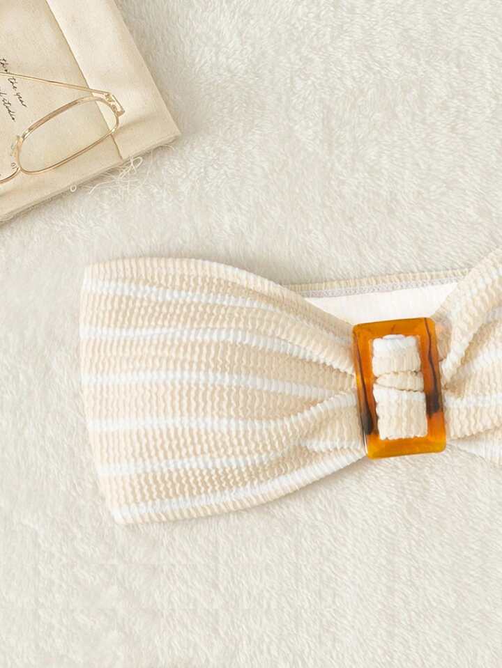 Top bikini bandeau con patrón de rayas con diseño con hebilla fruncido